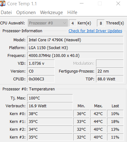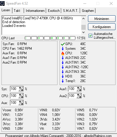 Hier noch 2 Screens von Core Temp & SpeedFan
