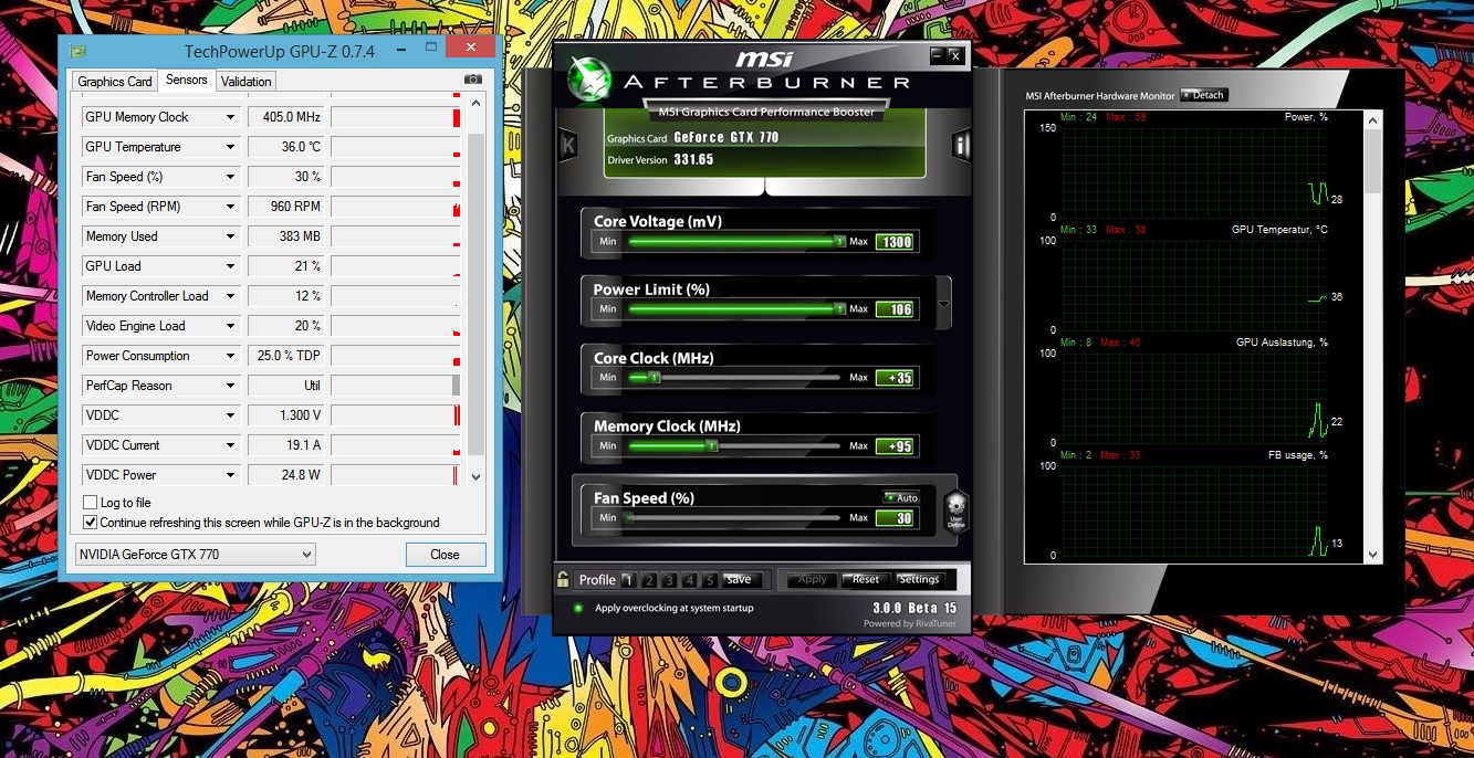 ich habe es hinbekommen das ich bei meiner Palit GeForce GTX 770 eine Spannung bis Maximal 1,3 Volt anlegen kann. Das Funktioniert Super. Das Problem ist aber, das die Karte dann sofort ins Powerlimit geht. Ich bräuchte so 110% oder 115%.
