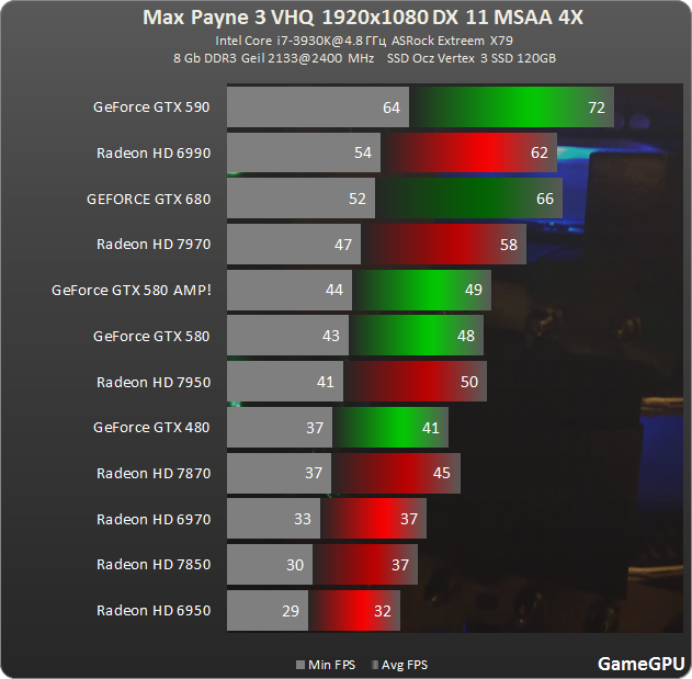 Ein ähnliches Phänomen beobachtet man übrigens bei Watchdogs. Da spielt die R9 295X2 mit zwei GPU's zwar auch vorne mit, aber ist trotzdem hinter einer single GTX 780 Ti