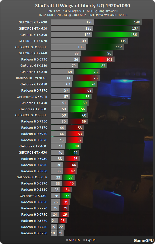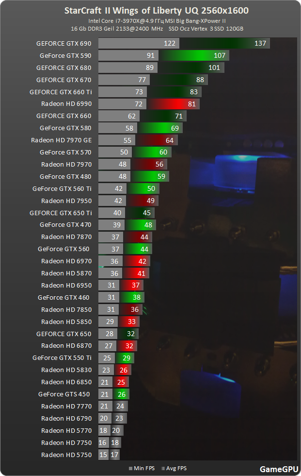 Bei dem Test war es eigentlich relativ unnötig den 6-Kerner einzusetzen, da Stacraft 2 nur 2 Cores addressieren kann. Ergo, es gibt keine Quad, Hexa oder Octa Core Unterstützung