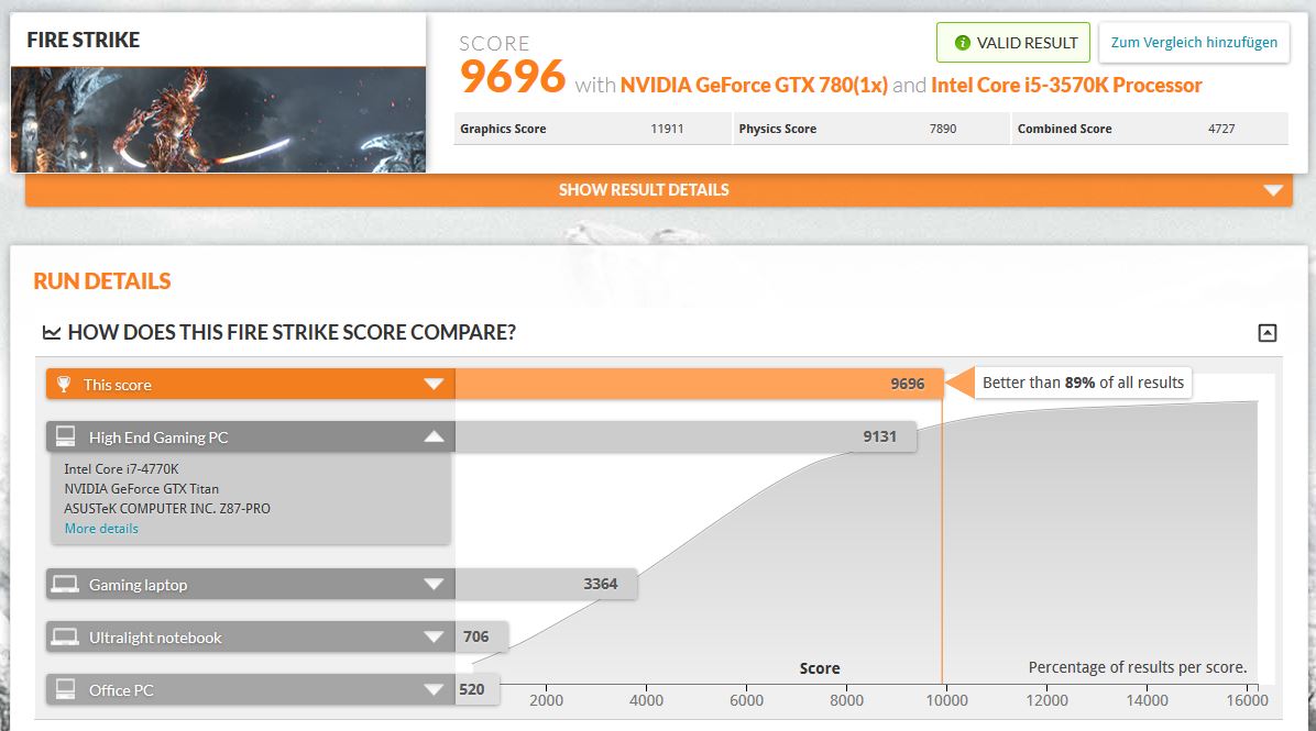 Mit den Taktraten aus der Signatur folgende Ergebnisse im FireStrike Benchmark.