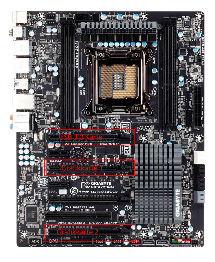 Du wirst erkennen, dass dort eine 780@6GB verbaut ist, die besagten Lüfter verwendet und dass dieser mit der Karte zusammen 3 Slots belegt.