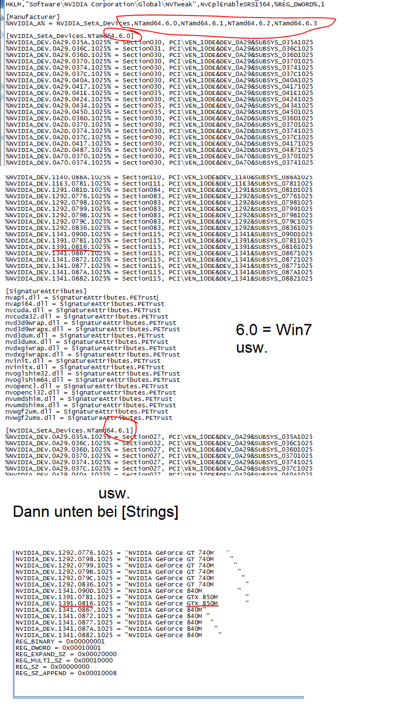 edit hab jetzt in allen Tabellen als jeweils letzter eintrag mit 1391 die zeile eingefügt, und bei den strings hinter jede zeile mit 850 gtx m modded hingeschrieben plus noch die zeile von die eingefügt. immer noch dass der installationsprozess dann abbricht.