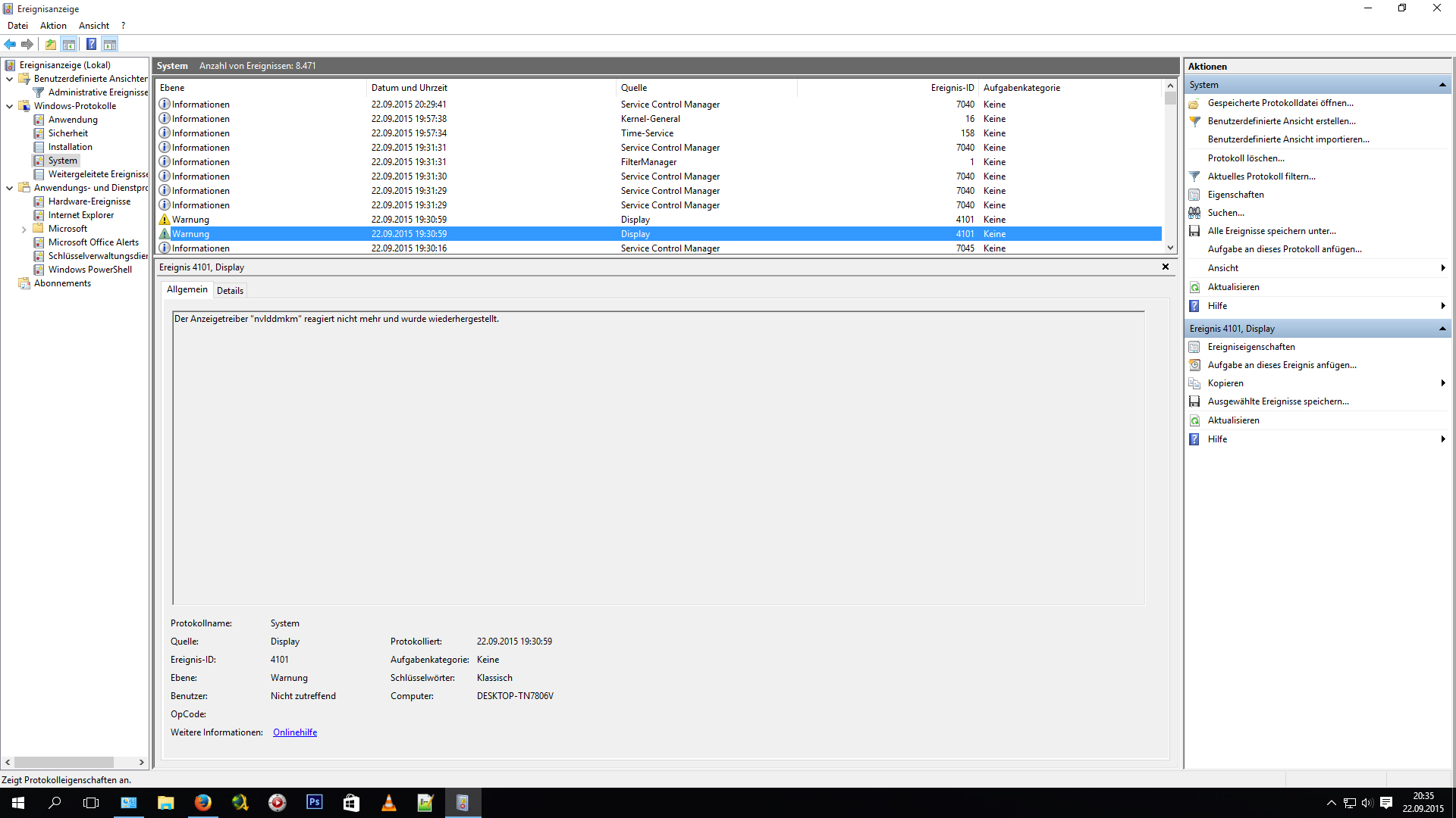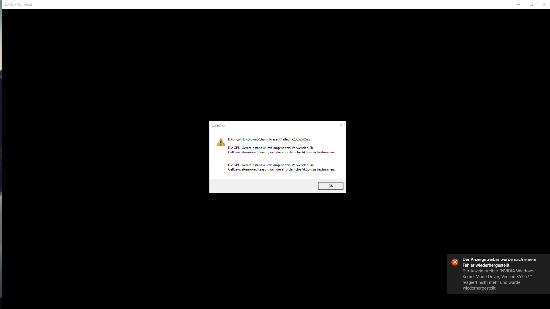 Der Anzeigetreiber "nvlddmkm" reagiert nicht mehr und wurde wiederhergestellt.