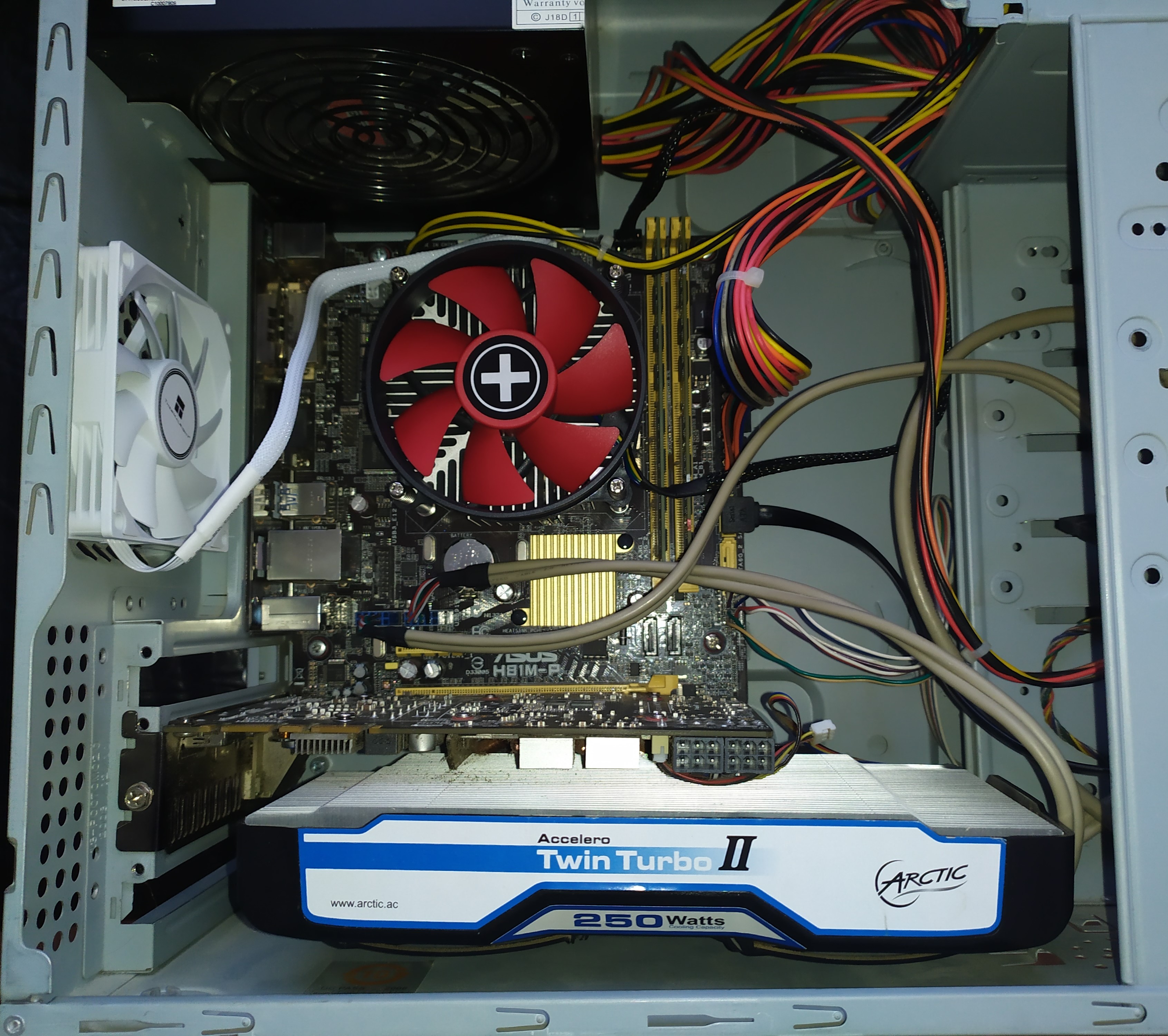 ich möchte mir aus meinen alten PC-Teilen einen Rechner bauen. So weit ist alles ok (i5 4460, 16 GB, SSD). Meine einzige Frage zu diesem Vorhaben wäre, ob die Grafikkarte (GTX 970) zu nah am Gehäuseboden ist (siehe Fotos). 0,5 cm scheinen mir doch sehr knapp. Einen Frontlüfter hat der PC auch nicht. Ist das bei dem GPU Lüfter vertretbar oder soll ich lieber die iGPU verwenden (Anwendungszweck sind Surfen, Filme gucken, Mails checken am Wohnzimmer TV aber die Option ältere Spiele zu spielen, wäre halt auch toll)? Ein neues Gehäuse würde ich nicht extra kaufen wollen.