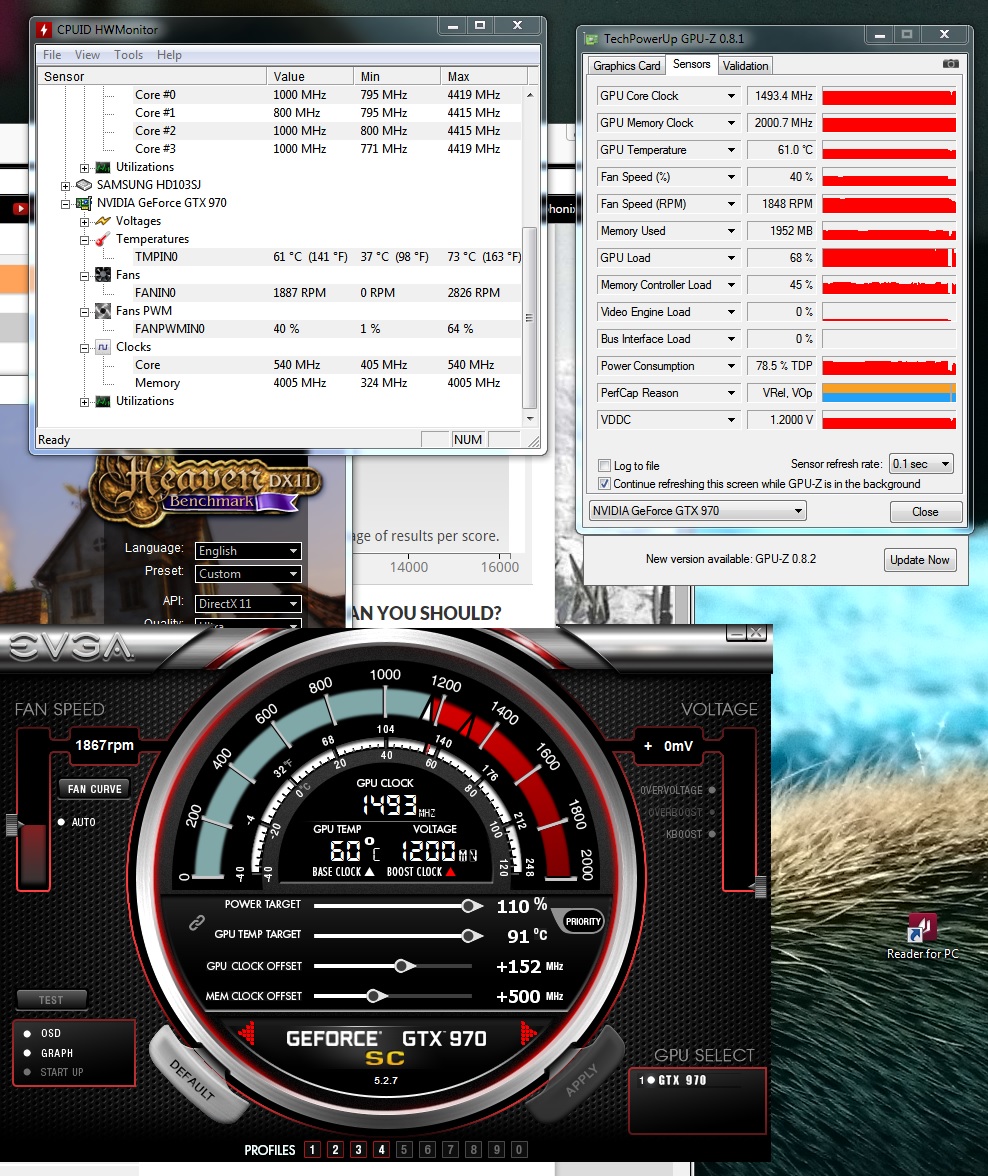 Allerdings muß ich auch dazu sagen, das wenn ich Game ich bisher immer locker mit den Standardeinstellungen 1178 MHz/ 7010 MHz ausgekommen bin. Zum Benchen Takte ich dann schon mal hoch um zu schauen was so geht, allerdings immer ohne die Spannung anzuheben. Ich habe auch schon in dem ein oder anderen Game wie BF4 oder auch Son Ryse of Rome mal den Takt von 1552 MHz laufen lassen, bisher keine Probleme damit im Game gehabt. Bin mit der Leistung der GPU doch sehr zufrieden und gegenüber meiner vorherigen HD 7870 GHz ist das doch schon ein Unterschied.