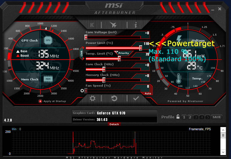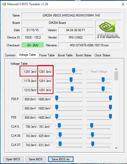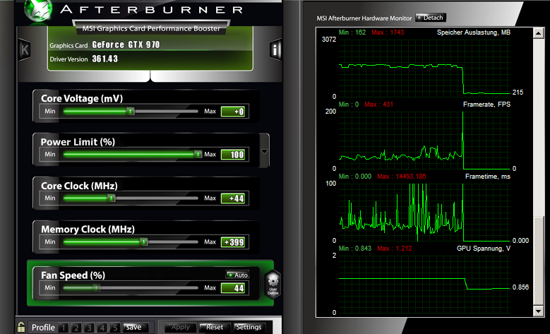 Leider kann ich im Afterburner trotzdem nicht die Spannung ändern. Egal, was ich einstelle, es bleibt bei den 1212mV unter Last.