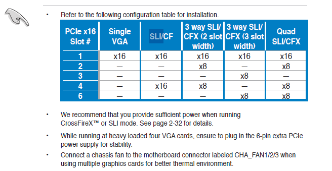 Ich habe zwei Palit GTX 970 im SLI laufen auf einem Asus Rampage IV Extreme. Alles wunderbar, solange die Karten in Slot 1 und 2 mit x16 und x8 Lanes stecken. Ich will aber auch die letzten 3% Leistung fürs Benchen haben und darum x16 und x16 laufen lassen. Das wären die Slots 1 und 4. Laut Handbuch soll man bei einem SLI System auch diese beiden nehmen. Wenn ich die Karten aber so stecke, werden sie beide erkannt, ich kann aber in der Nvidia Systemsteuerung kein SLI auswählen. Beim ersten PC start wurde gar keine Möglichkeit für SLI angezeigt, nach dem Neustart ist das Feld ausgegraut und angeblich wäre keine SLI Brücke angeschlossen. Das ist aber die Gleiche wie bei slot 1 und 2. Auch andere Brücken werden nicht erkannt. Ich habe einfach keine Ahnung warum das so ist und was das Ganze soll. Es ist einfach nicht sinnig. Vielleicht kann mir trotzdem einer helfen.
