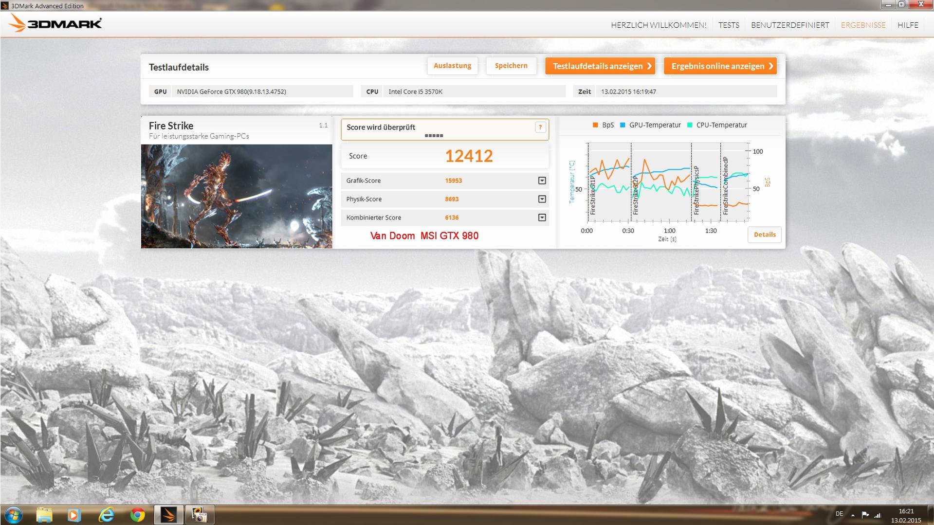 Was ist getestet habe, ich folgender Benchmark: FurMark. Ich habe den Benchmark 15 Minuten am Stück laufen lassen