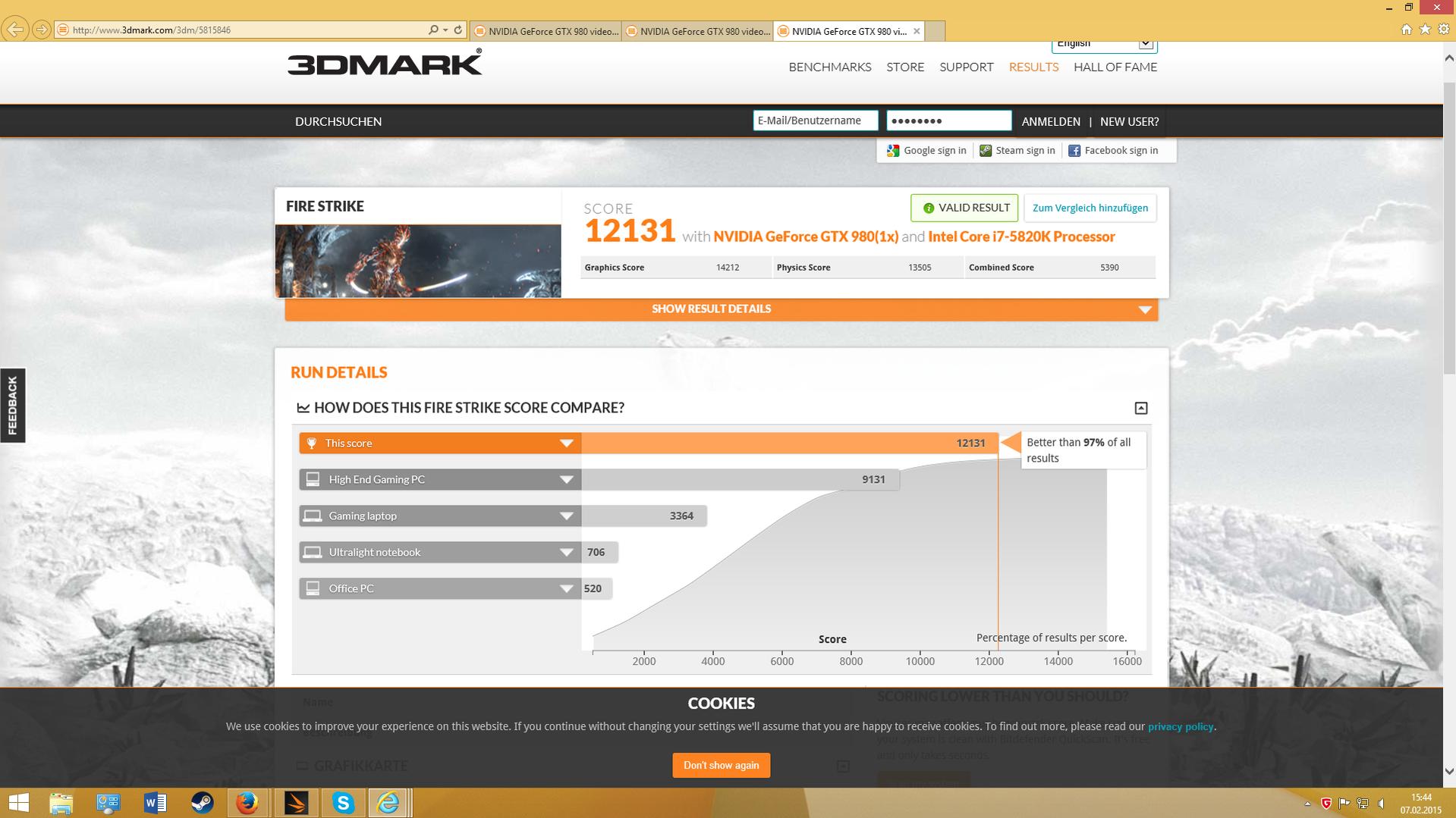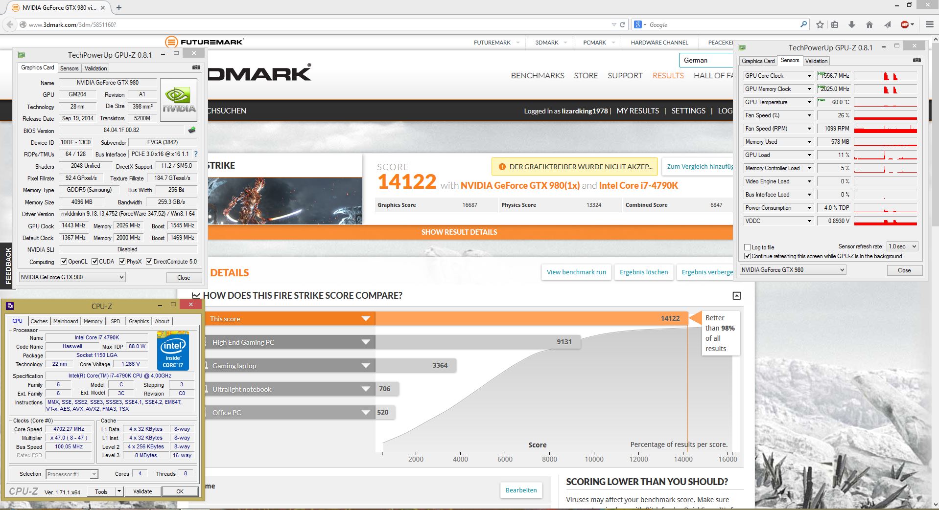 Fire Strike @ EVGA 980 Superclocked ACX2.0 (ASiC 77,1%) (CPU nicht übertaktet bisher)