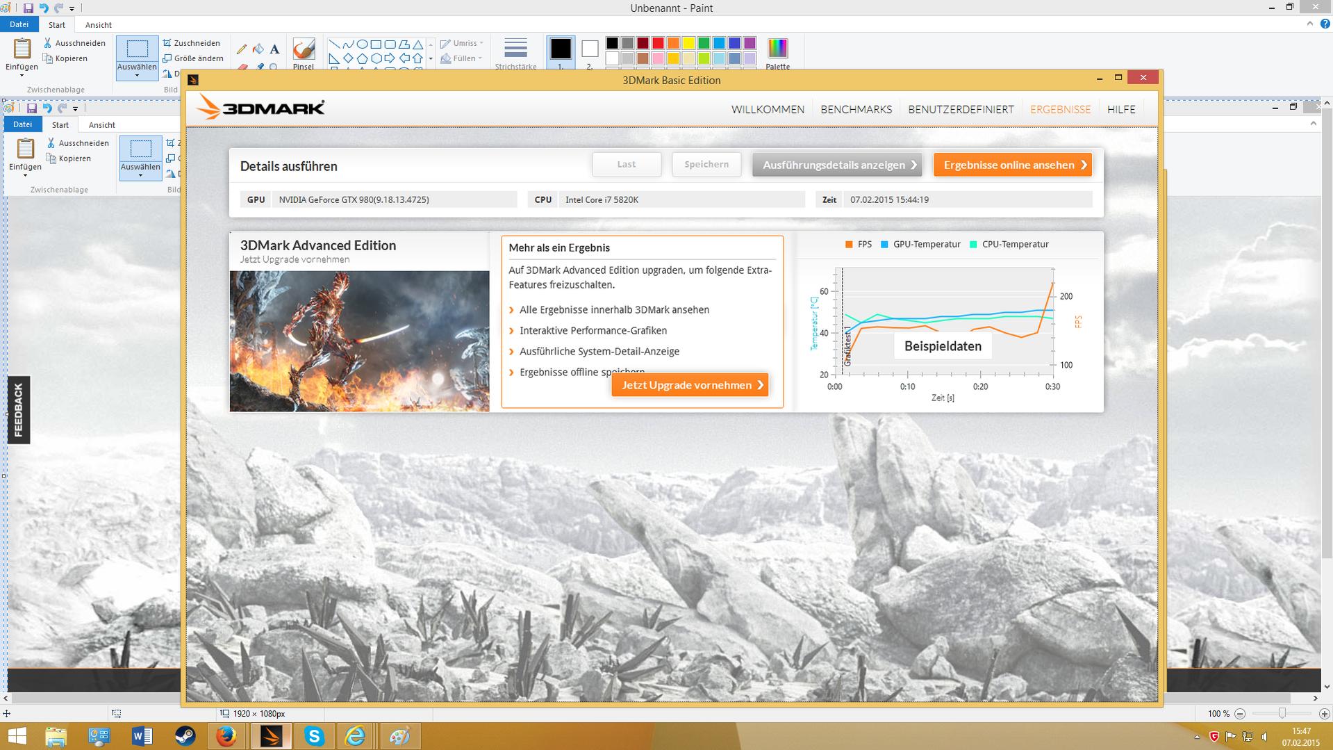 Fire Strike http://www.3dmark.com/fs/3868749 14224 Punkte