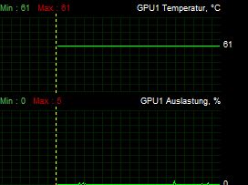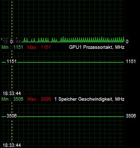 - in Afterburner die Lüftersteuerung auf manuell setzen, dann bleibt die Lüfterdrehzahl zwar gleichmäßig aber dennoch taktet die Karte nicht herunter.