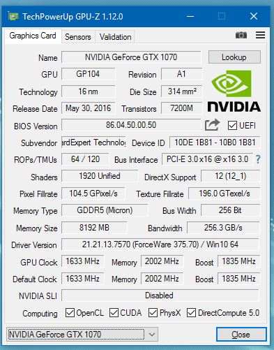 Habe nun neu eine GTX1070 und stelle im Spiel (Planet Coaster) bei 1920x1200 und Grafikeinstellungen ingame auf Ultra folgendes fest: