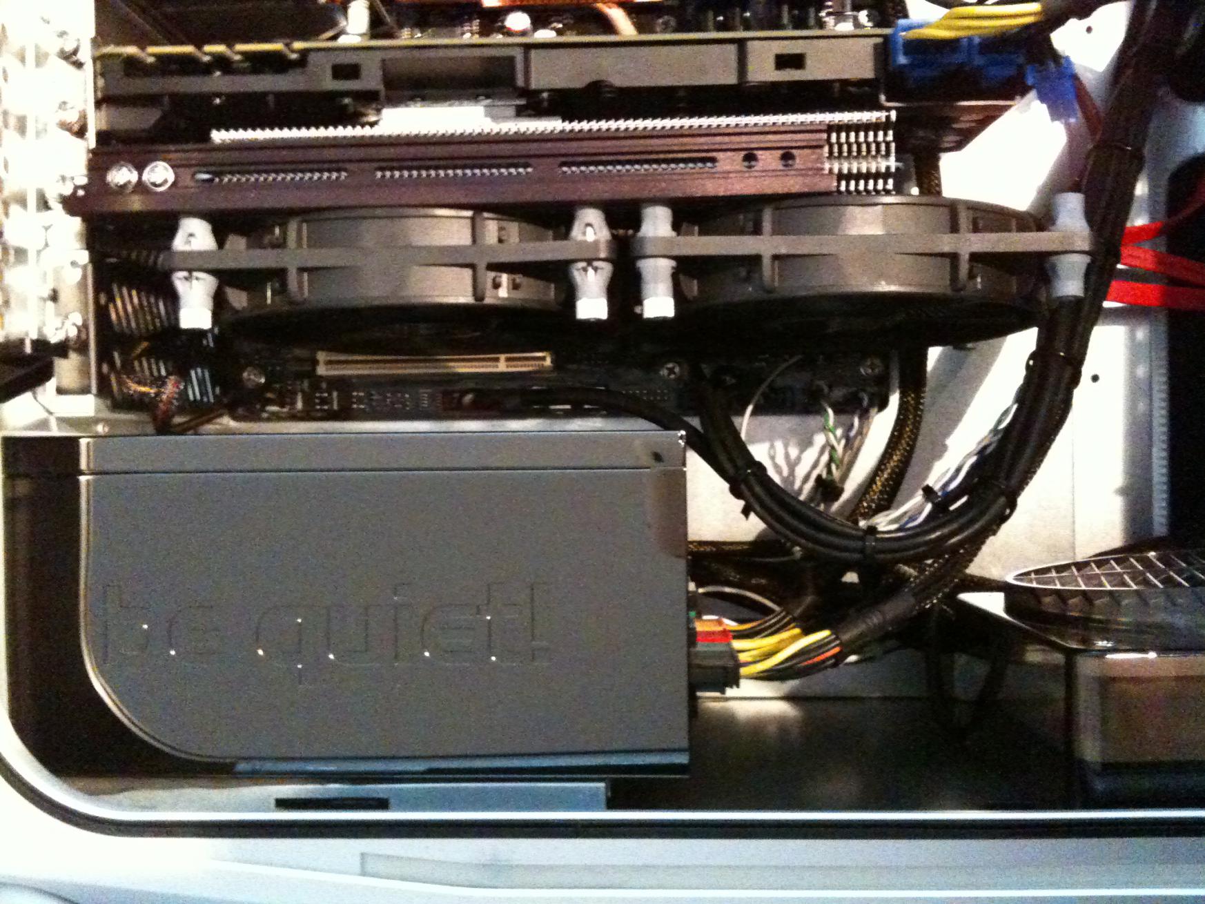 @mmic: Sieht besser aus, finde ich. So haben die Lüfter auch genug Raum unten zum atmen. Hast du die beiden Be quiet auf 12V? Bin gespannt auf Spieletemps. Wenn die ok sind, dann hol ich mir definitiv auch eine GTX 480. Der MK-13 wartet schon:-)