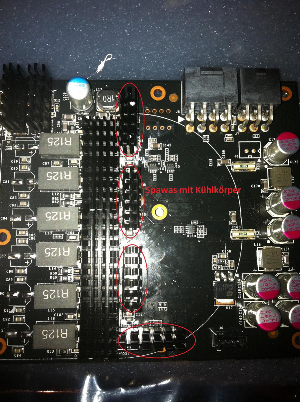 Mit dem Ergebnis bin ich zufrieden, ausser mit der Tatsache, das mir nicht bewusst war, dass ich die Grundplatte hätte drauflassen können. Somit musste ich die mitgelieferten Kühlkörper für Ram und Spawas aufkleben.