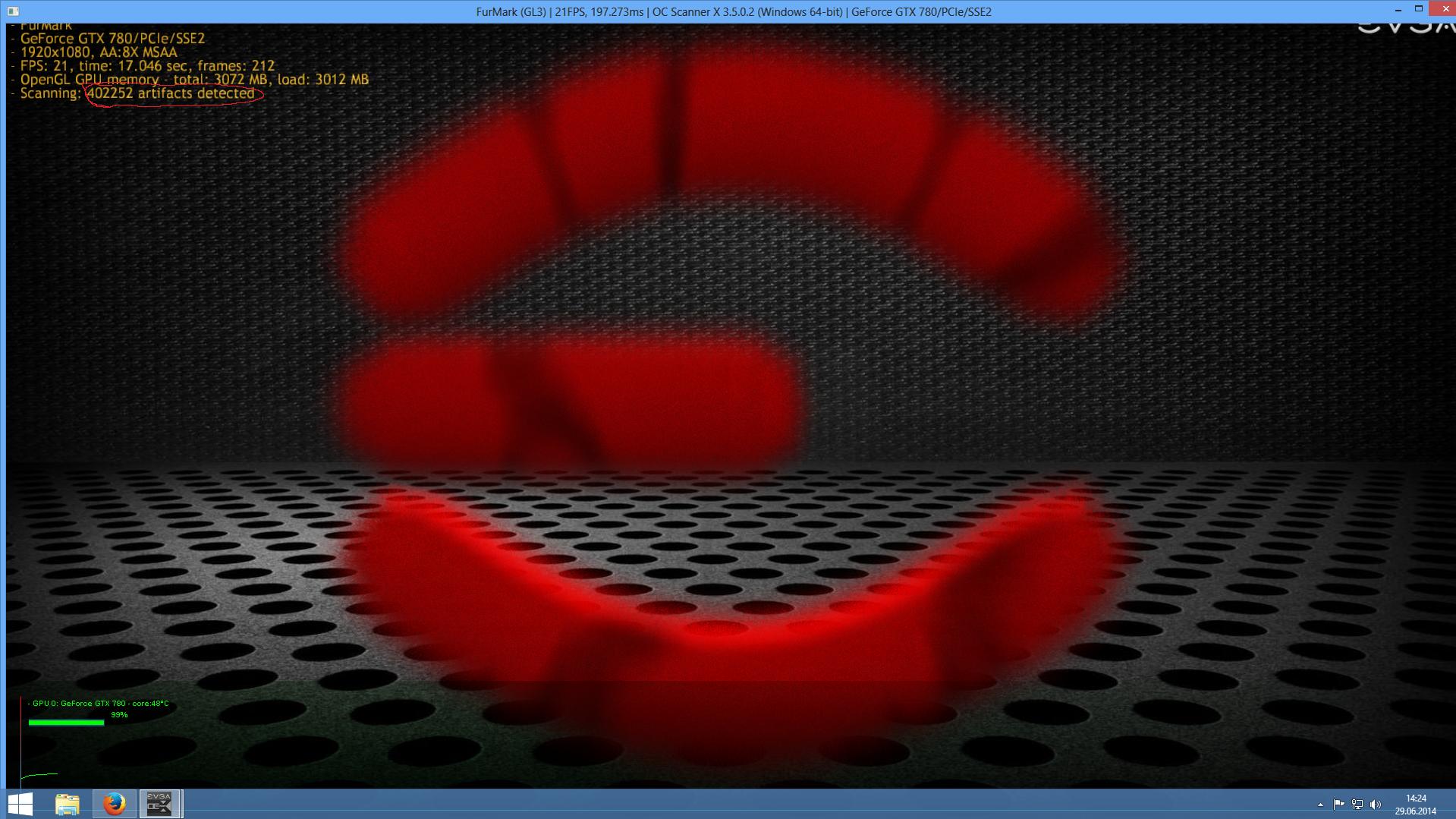Habe das Gleiche mit meiner EVGA GTX 780 SC ACX mit Default-Werten. Treiber 377.88 WHQL und die neue Version vom OC Scanner in Win 8.1.