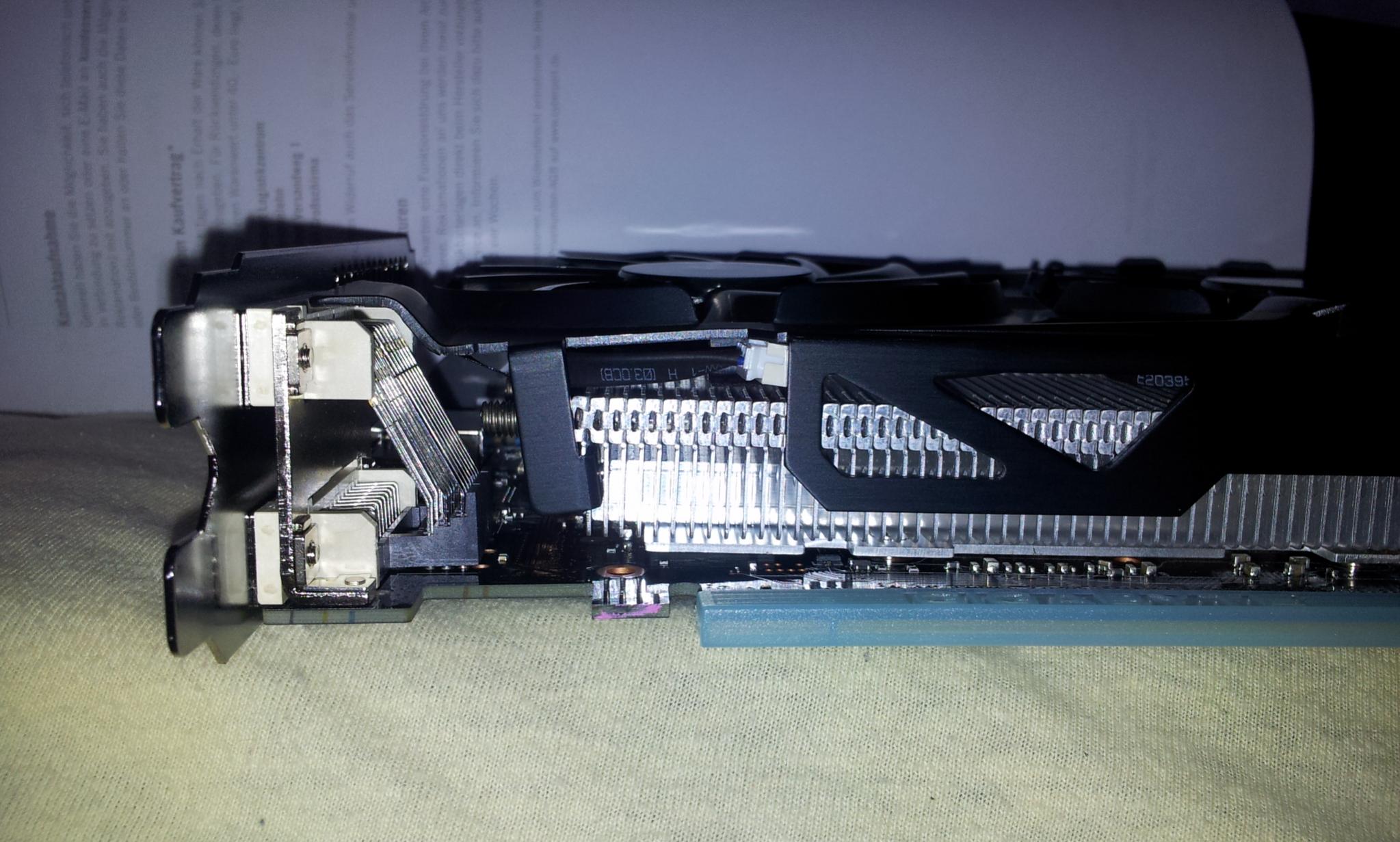 Klebestreifen war auch nur ein kleines Stück, habe mich beim ersten starten sehr erschrocken, der 3. WF Lüfter war extreme Laut (Rattern / Turbine), dann ist mir aufgefallen, dass intern ein Kabel dazwischen gesteckt hat... Habe das Kabel etwas hochgelegt, sodass es nicht mit dem Lüfter in Berührung kommt und jetzt meinen ersten Windows - Start gehabt... Idle ist schomal mit 17% Fan-Speed (29°C) unhörbar