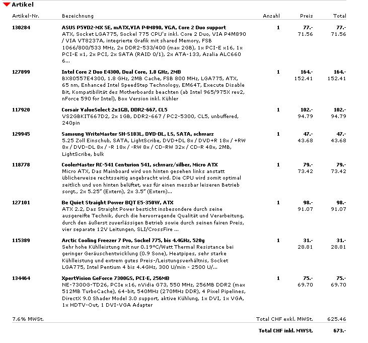 Ich epersönlich liebäuge nämlich schon mit einem E4300... Die Frage ist halt einfach, bo sich der Mehrpreis rechtfertigt! Wäre als MoBo ein ASUS P5VD2-MX SE passend?