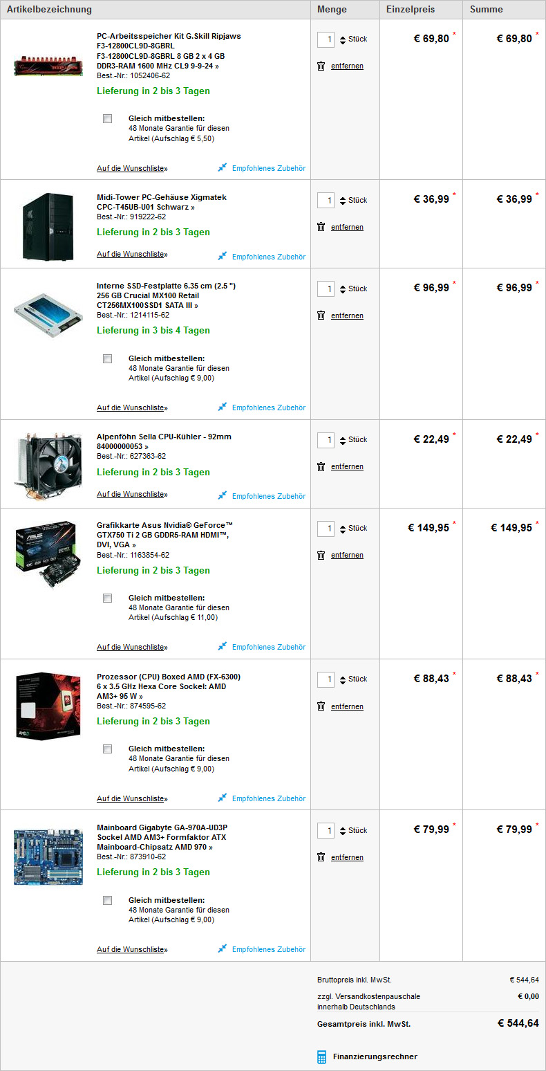 Es wäre sehr nett, wenn mir jemand einen kompletten PC für ~ 500 Euro zusammenstellen könnte
