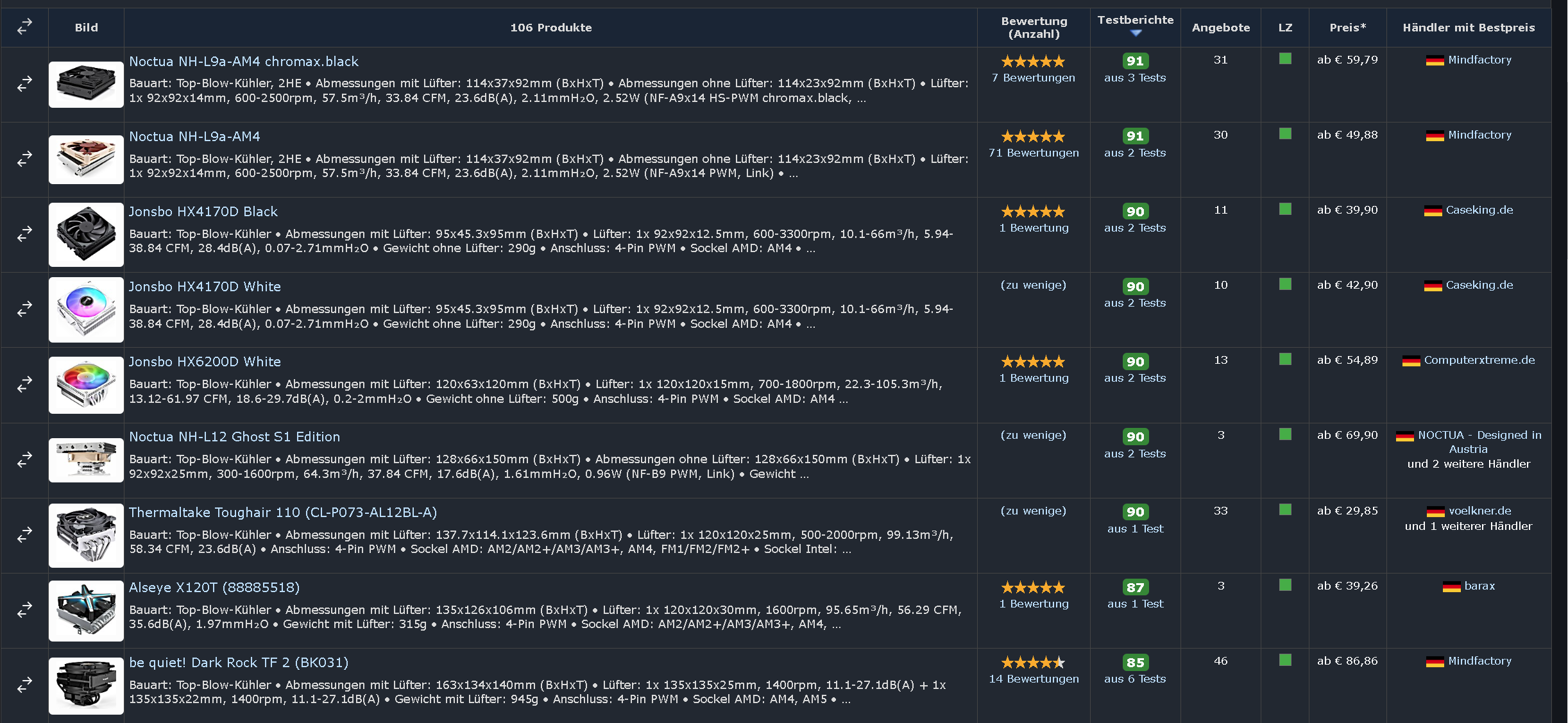 Na ja dann vielleicht einer von diesen?karlheinztotto schrieb:Einen riesigen 120mm Towerkühler kann ich nicht verwenden , da das Gehäuse zu klein ist , passt von der Höhe nicht.