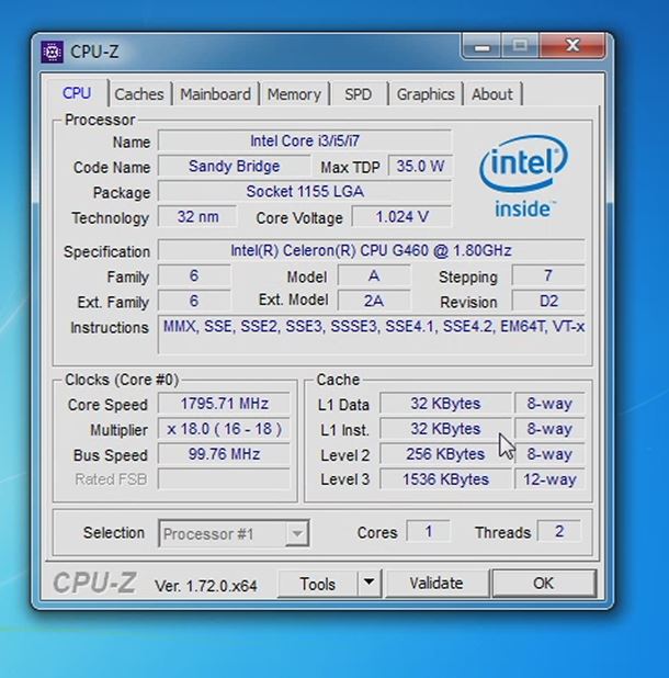 Prozessor: Intel(R) Celeron(R) CPU G460 @ 1.80GHz 1.80 GHz