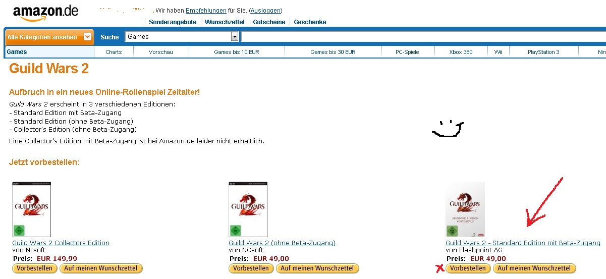 Ich frag mich sowieso wieso , Amazon die Version mit beta schon vor dem 10.04 verkauft... Verletzen sie damit nicht die Vorgaben von ArenaNET? Die haben doch selbst gesagt sie dulden keine Vorverkaeufe vor dem 10. April und die seien nicht berechtigt fuer die Betas
