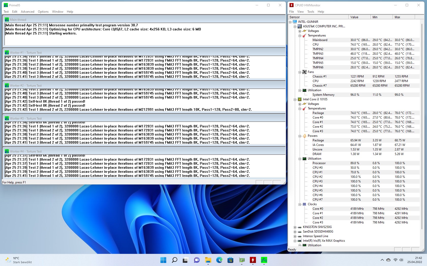 Da es immer wieder zu abstürzen und Freezes kam, habe ich das System mit Furmark und Prime95 getestet und keine Auffälligkeiten gefunden. Das System blieb angenehm kühl.