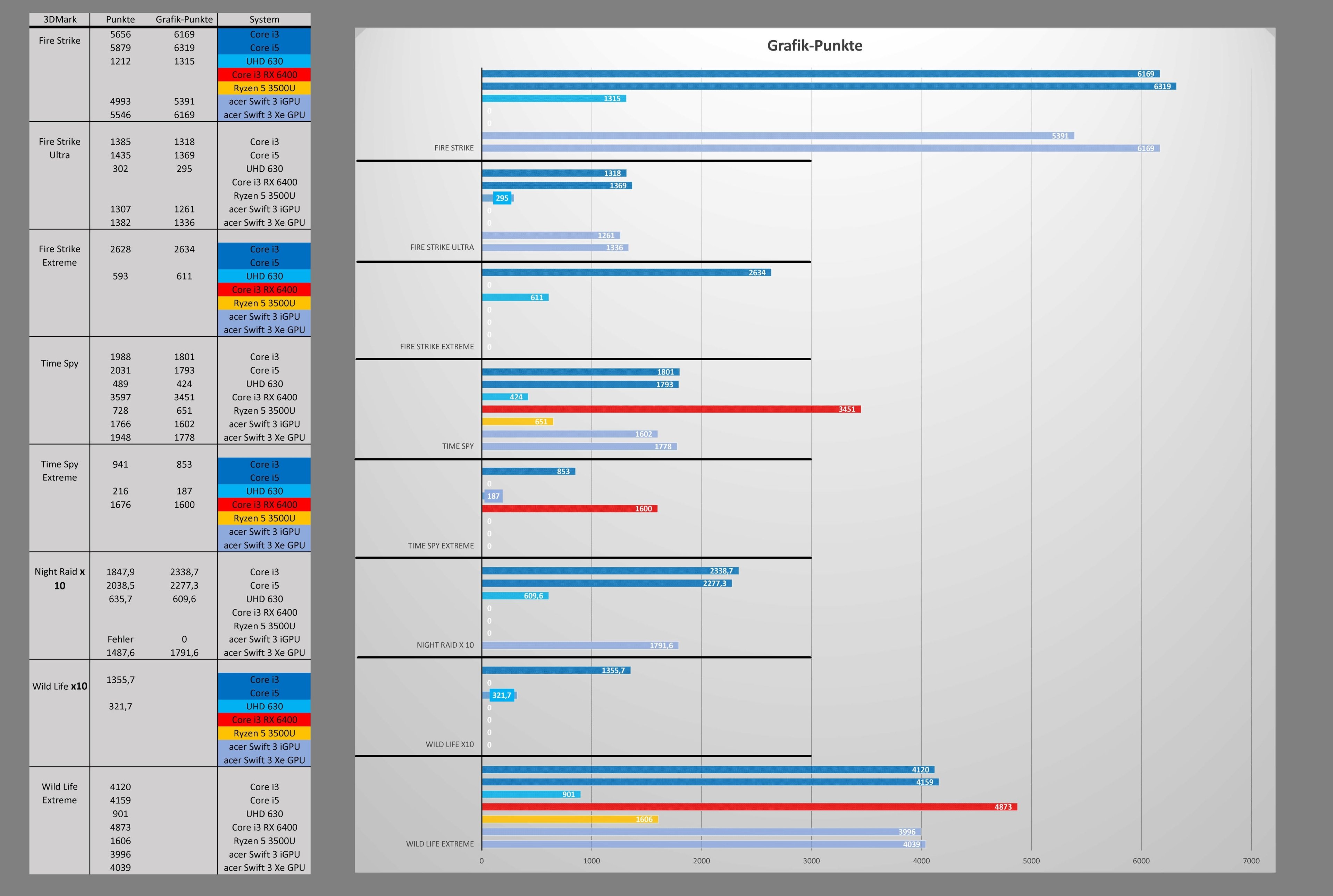 Zum Vergleich, eine Ryzen 5 3500U APU liefert 3.269 und 3.161 Punkte.