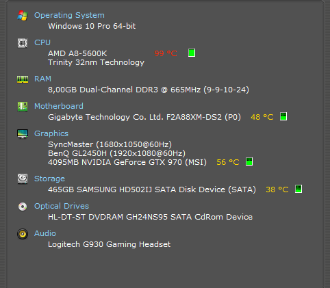 Bei 108°C an der APU, auf jeden Fall einen CPU-Kühler und neues Gehäuse oder Gehäuselüfter ins alte Gehäuse.