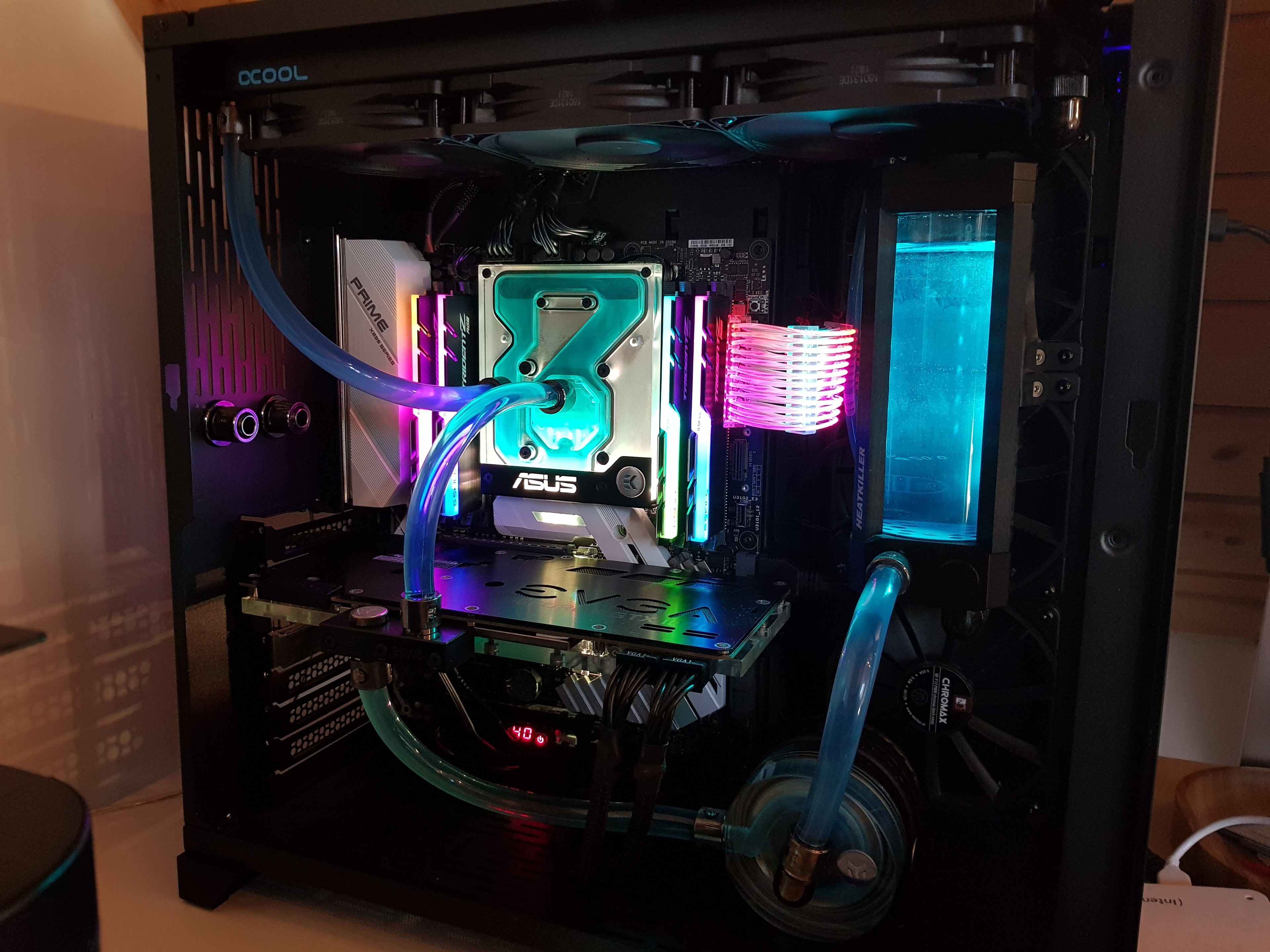 Angedacht sind AKTUELL zwei 360er Radiatoren und eine Pumpen/AGB-Kombi (Aqua Computer D5 Next + Watercool Heatkiller Tube 150 D5), wobei der zweite 360er rein optional ist, sofern meine Idee funktionieren kann (die ich hier durch O11-Besitzer gerne verifizieren würde).