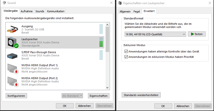 ich kenne mich wirklich nicht aus ;(, habe jetzt unter Windows auf 44 khz gestellt im Treiber auch. Kannst du mir bitte sagen wenn du jetzt shooter zocken würdest, welche Einstellungen du genau verwenden würdest? ganz genau welche ^^