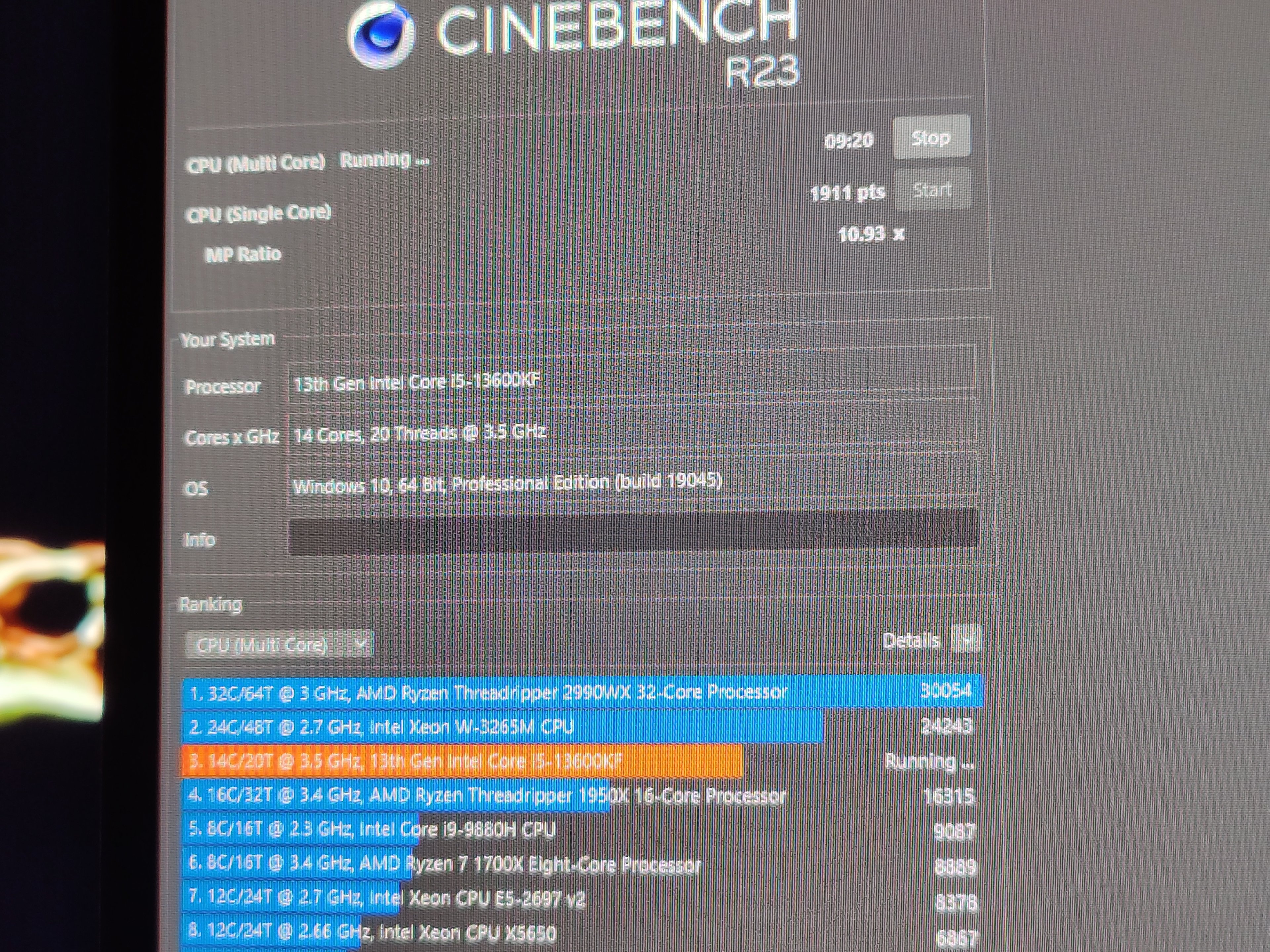 Hi, ich habe cinebench23 mit arctic freezer 2 versucht. Jedes mal wenn ein Bild fertig gerendert wird, wird ein Balken angezeigt/korrigiert, der nach den ganzen 10 Minuten das Endergebnis prognostiziert.