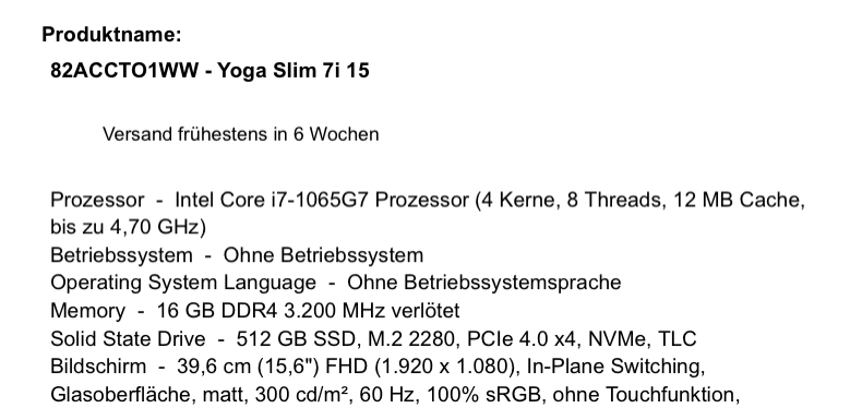 Das nigelnagelneue Yoga Slim 7 15ITL05, aber sehe gerade, die günstige konfigurierbare Version ist schon wieder aus dem Shop verschwunden. So wie ich Lenovo kenne, kommt die auch nie wieder.