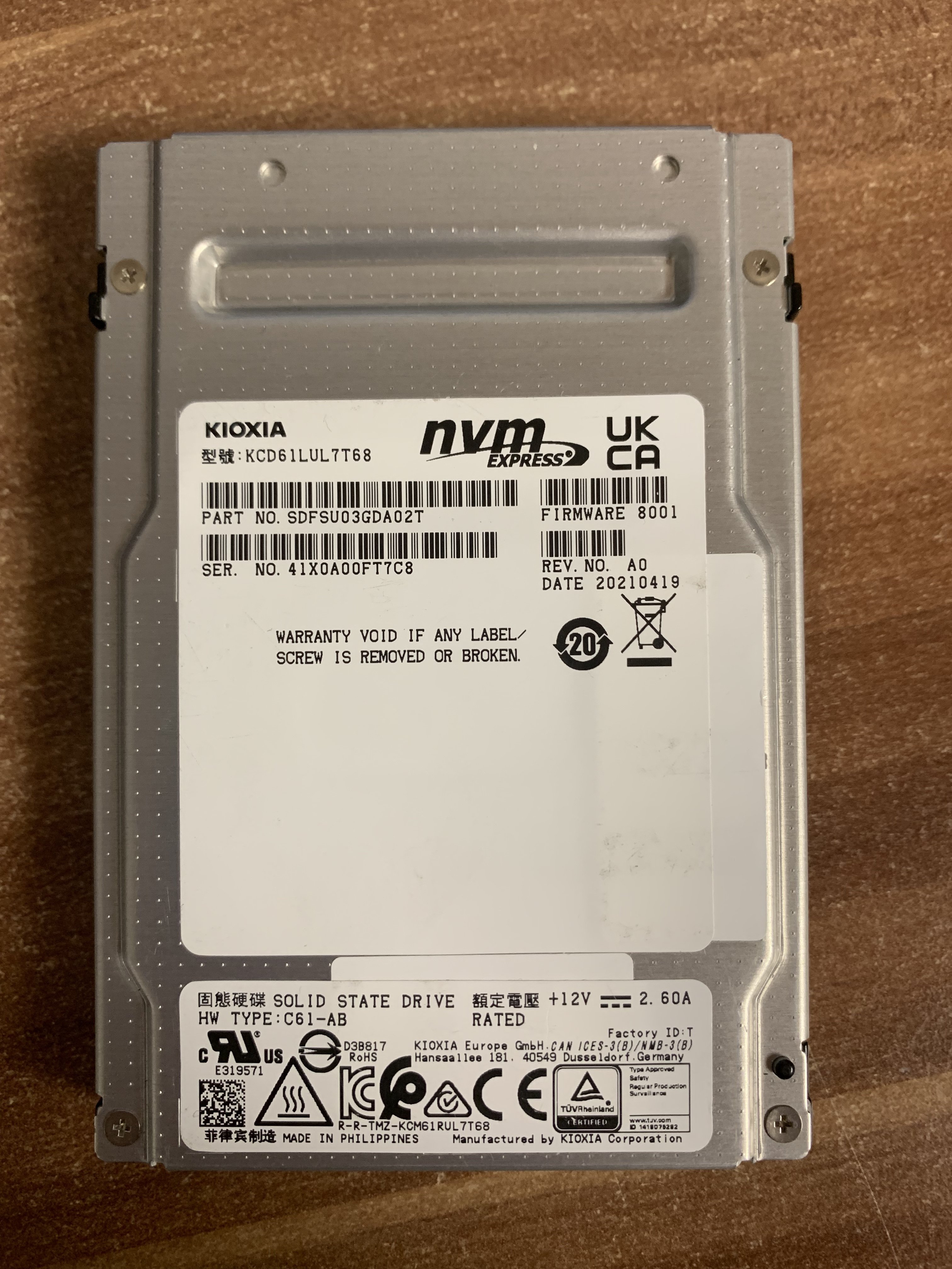 Interessanterweise hat anscheinend jemand zwischendrin die Firmware geupdated - auf dem Label und anderen Screenshots die ich gefunden habe war die Firmware 8001. Die Seriennummern hatten da auch mit 31 angefangen statt 41.