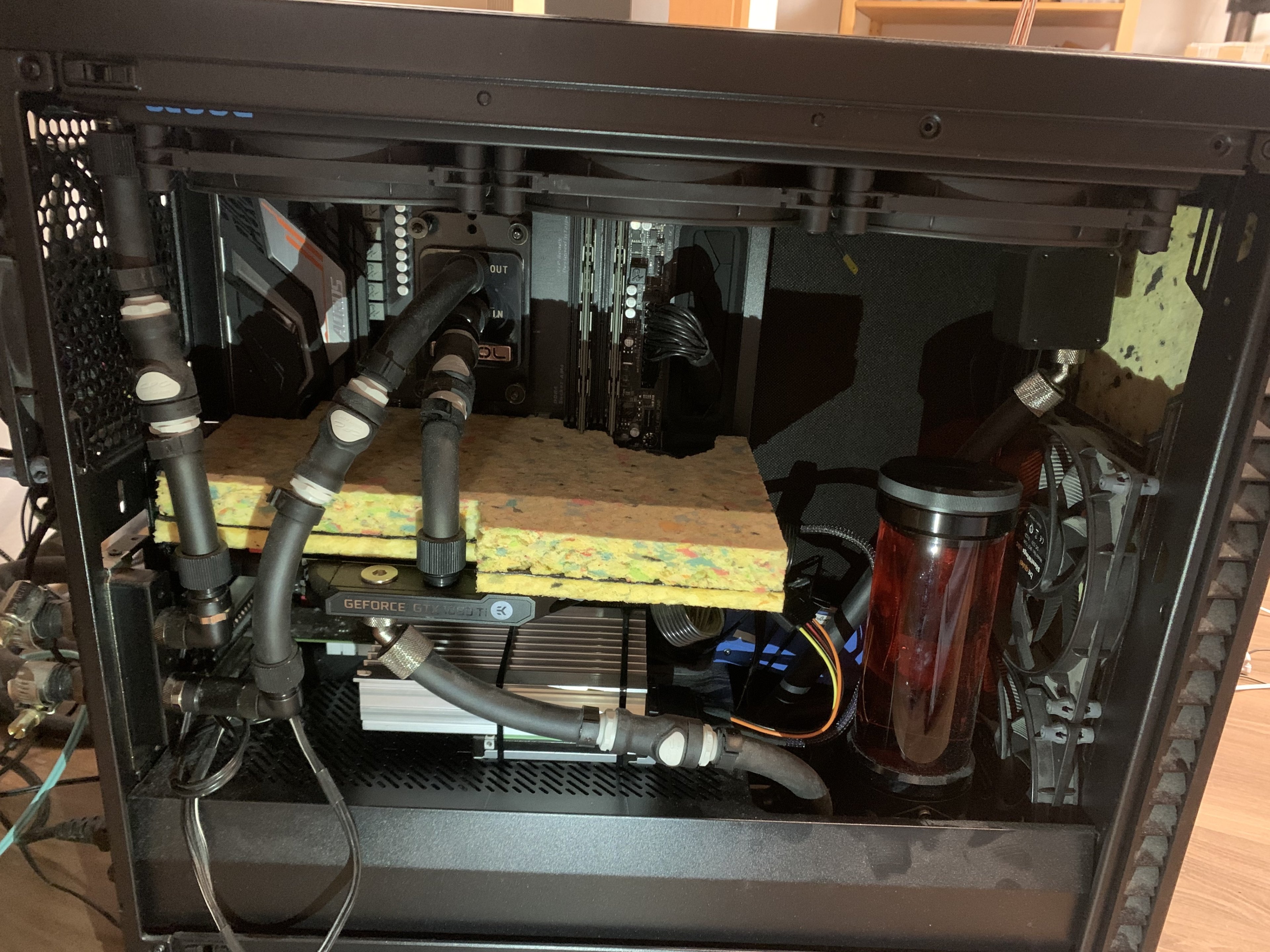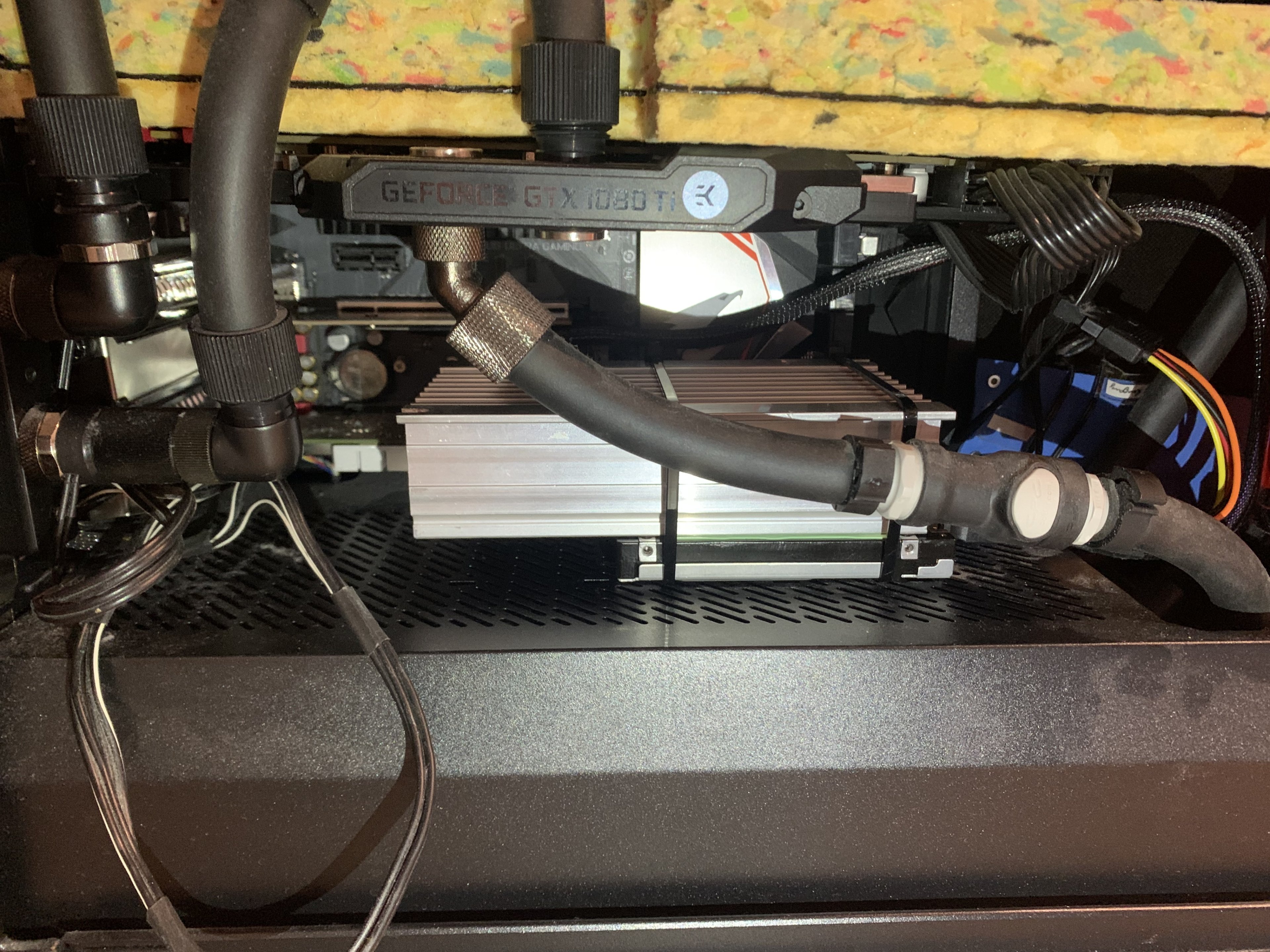 Zum Glück passt die noch mitsamt dem Kühler rein... am nervigsten war es, das Stromkabel ans Netzteil zu bekommen weil mir meine gesamte WaKü im Weg war.