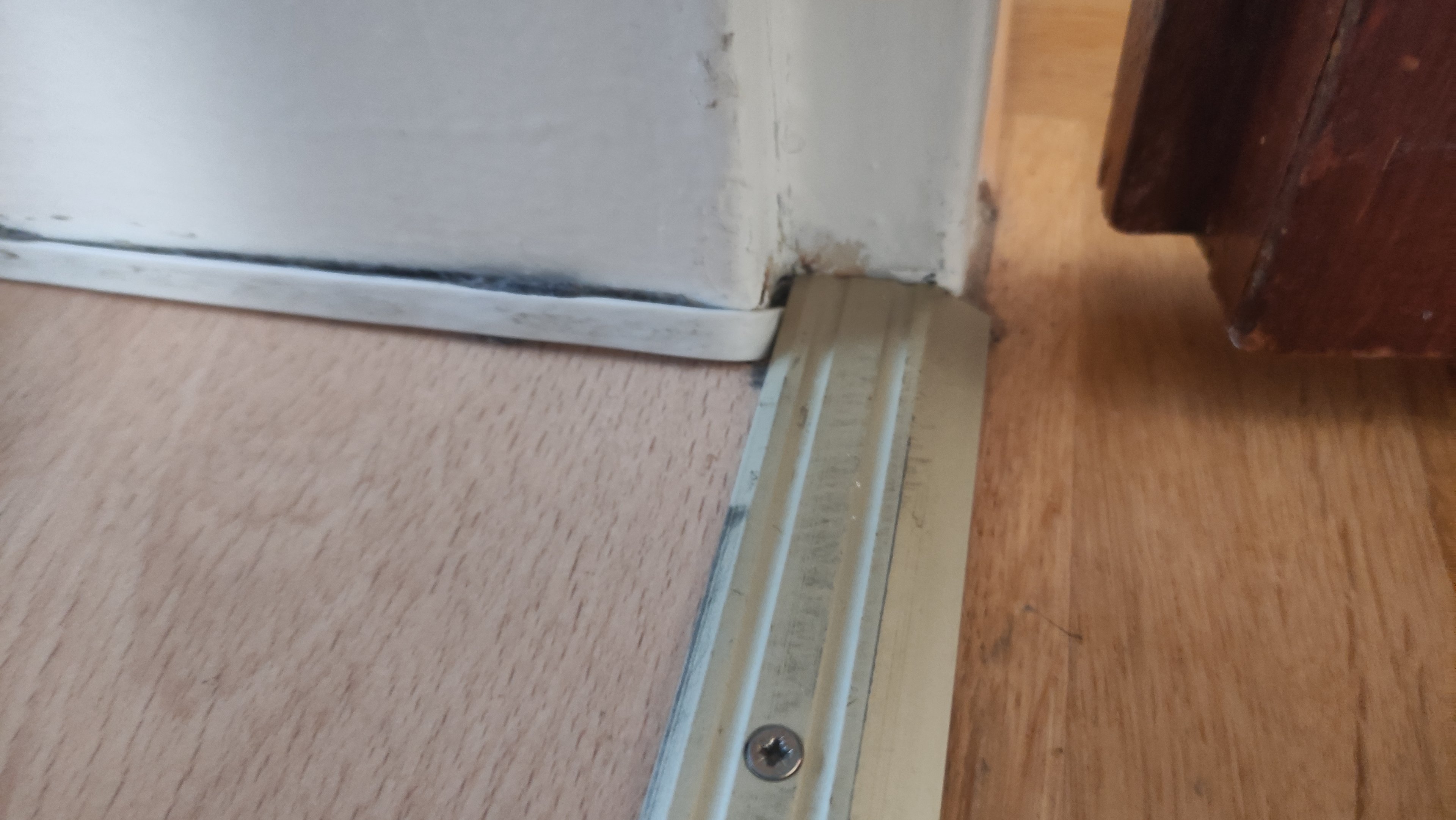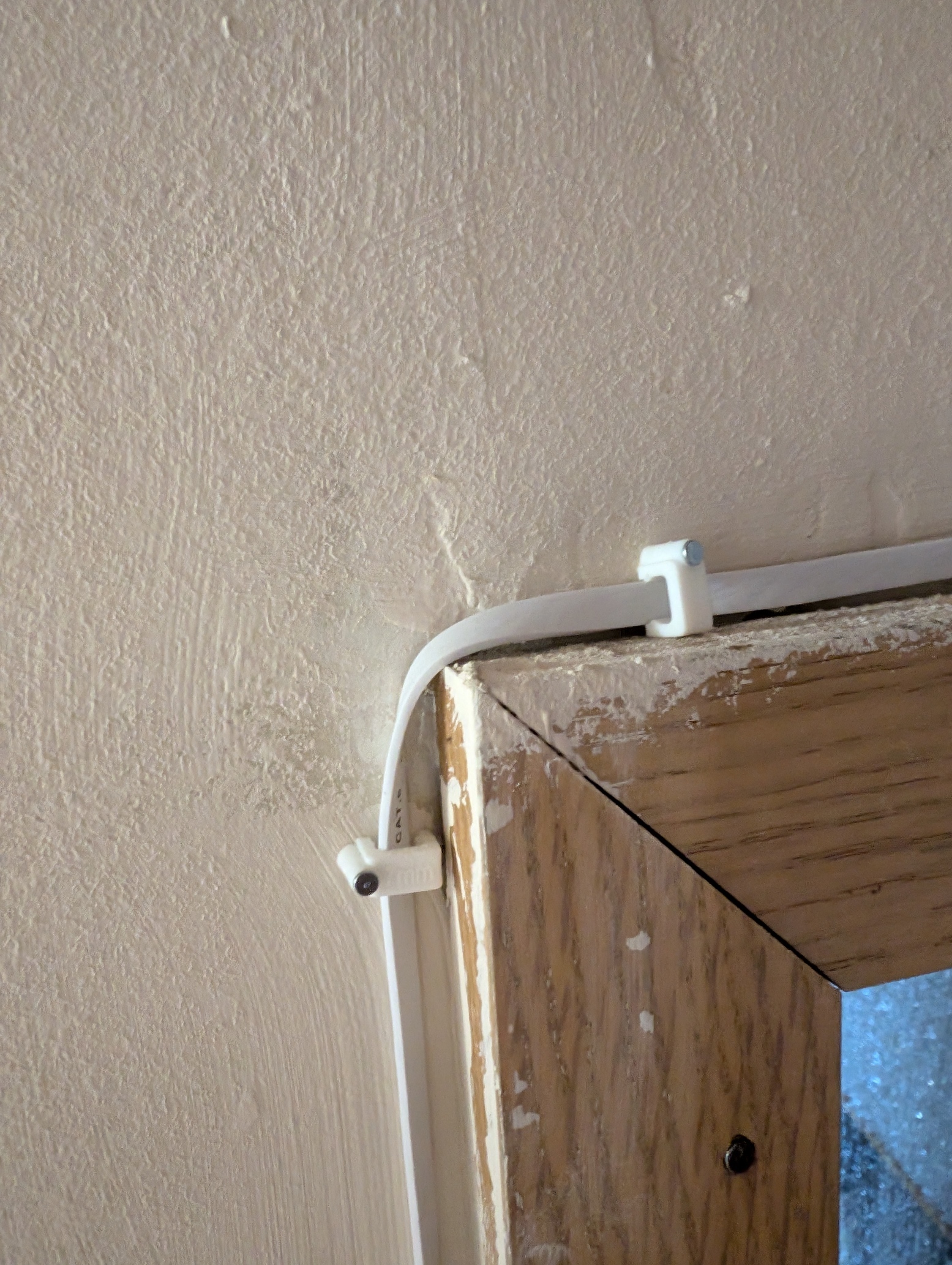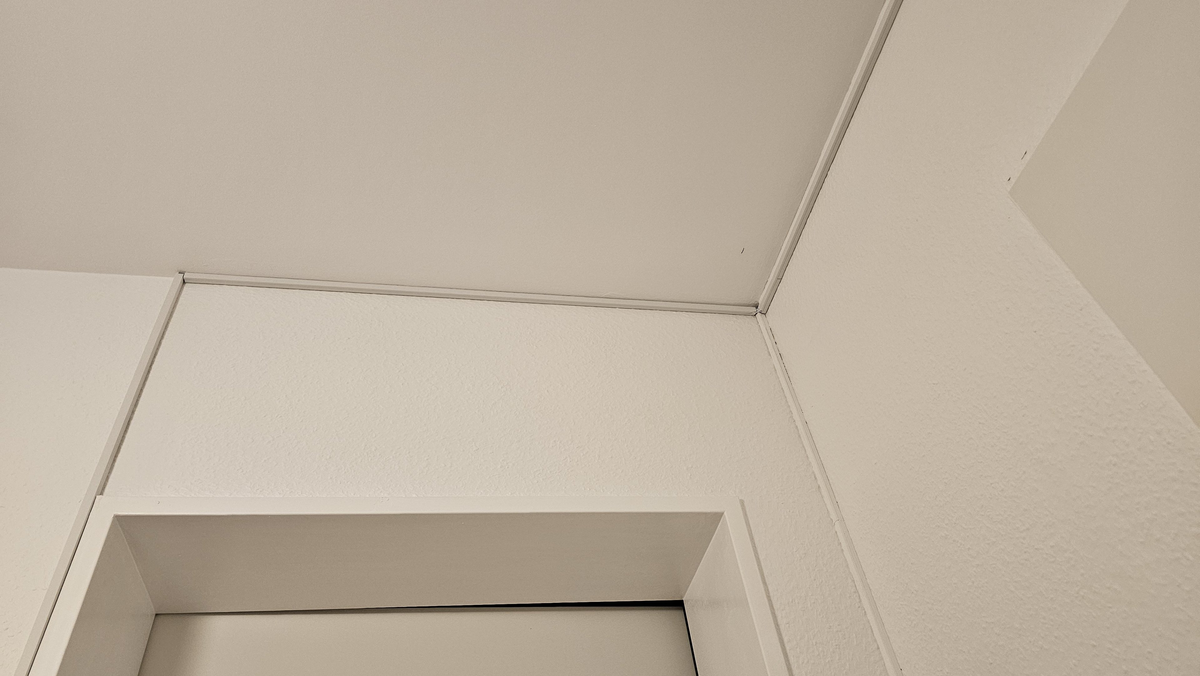 Geht dann über Profile an der Decke entlang auf die andere Seite und am anderen Türrahmen wieder runter. Nur habe ich dort ein Loch durch die Wand bohren können.