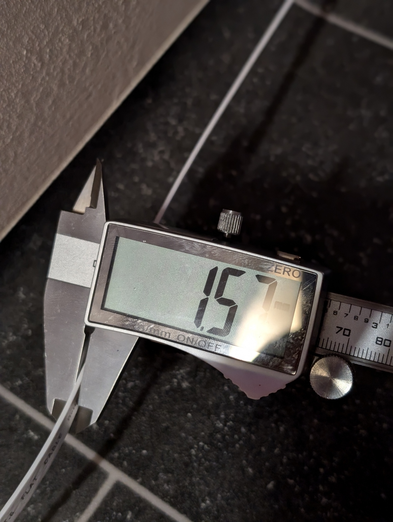 Das Kabel wirbt zwar damit, dass es Flach ist, aber ich finde nirgends die Dicke. Das ist schon mal verdächtig. Zumal die ganze Schirmung unnötig und in deinem Fall sogar hinderlich ist. Du willst es ja Flach und für GBit über 20m tut es auch ein simples CAT5 bzw. CAT6 U/UTP Kabel. Beispiel U/UTP (nur 1,5 mm Dick), U/FTP wäre schon bei 2,7 mm.