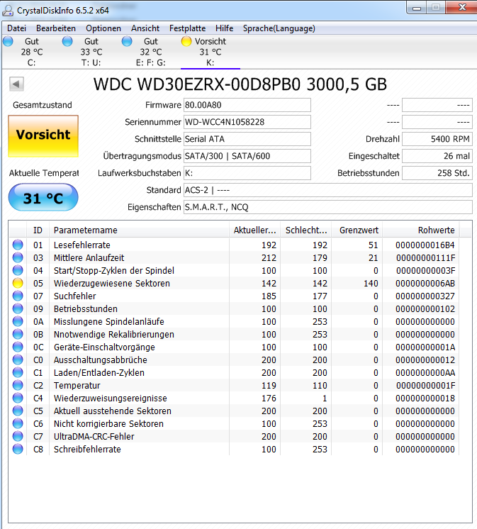 0 KByte leicht verfälscht (< 8 Bit/Sektor, 0 Sektoren)