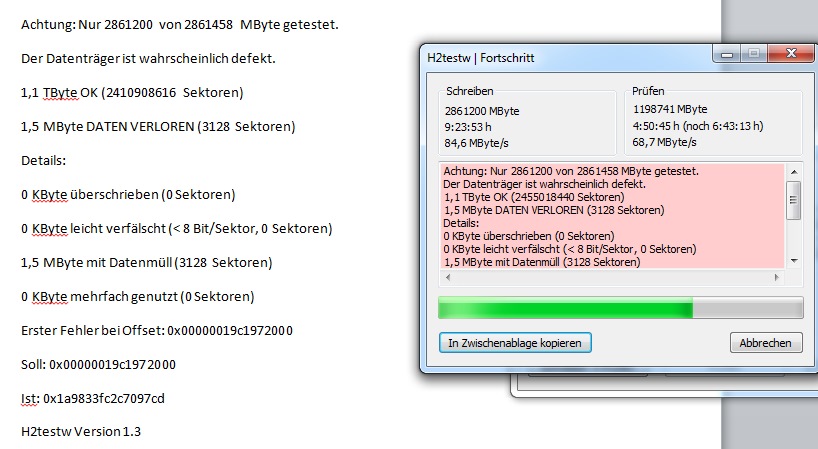 Achtung: Nur 2861243 von 2861458 MByte getestet.