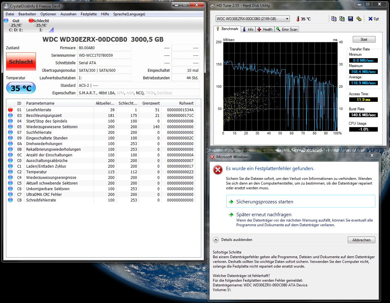 Der Sharkoon Quickport XT USB3.0 mit der WD Gree hängt übrigens am USB 3.0-Anschluss meines Notebooks...