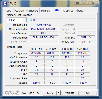 RAM: 4GBx2-Kit GEIL PC3-14900