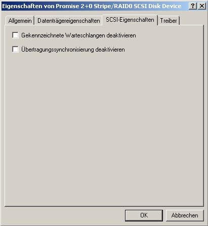 Bei einem RaidController macht es wohl keinen Sinn dort den Haken zu setzen, da es sich nicht um einen echten SCSI Controller handelt. Du kannst es ja mal versuchen, ob es etwas bringt. Es kann Dir aber passieren, dass Dein Raid nicht mehr geht.