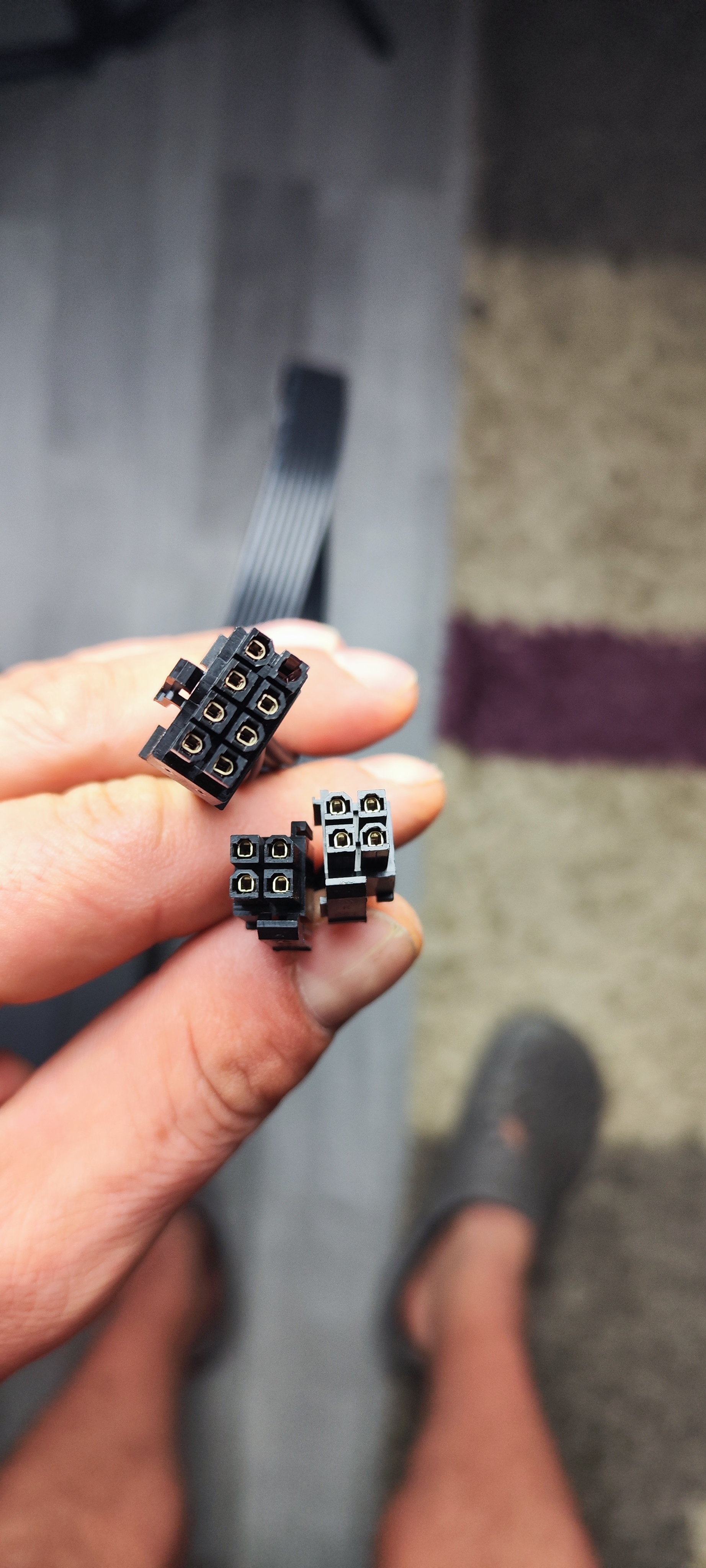 Danach hab bemerkt das 2 kabel beim Netzteil dabei sin wo baugleich der GPU Kabel sind allerding ist dort 1 pin nicht vorhanden.