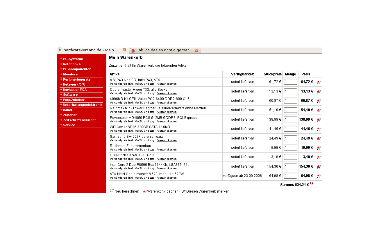 ja festplatte würd ich schon auch überlegen die pro-gb-kosten sind bei 640gb heute deutlich besser wie bei 320gb.
