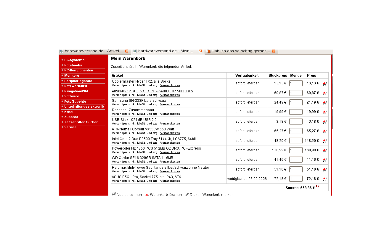 Ihr müsst mal den Kleinkram miteinbeziehen also Gehäuse, Laufwerke, Zusammenbau...