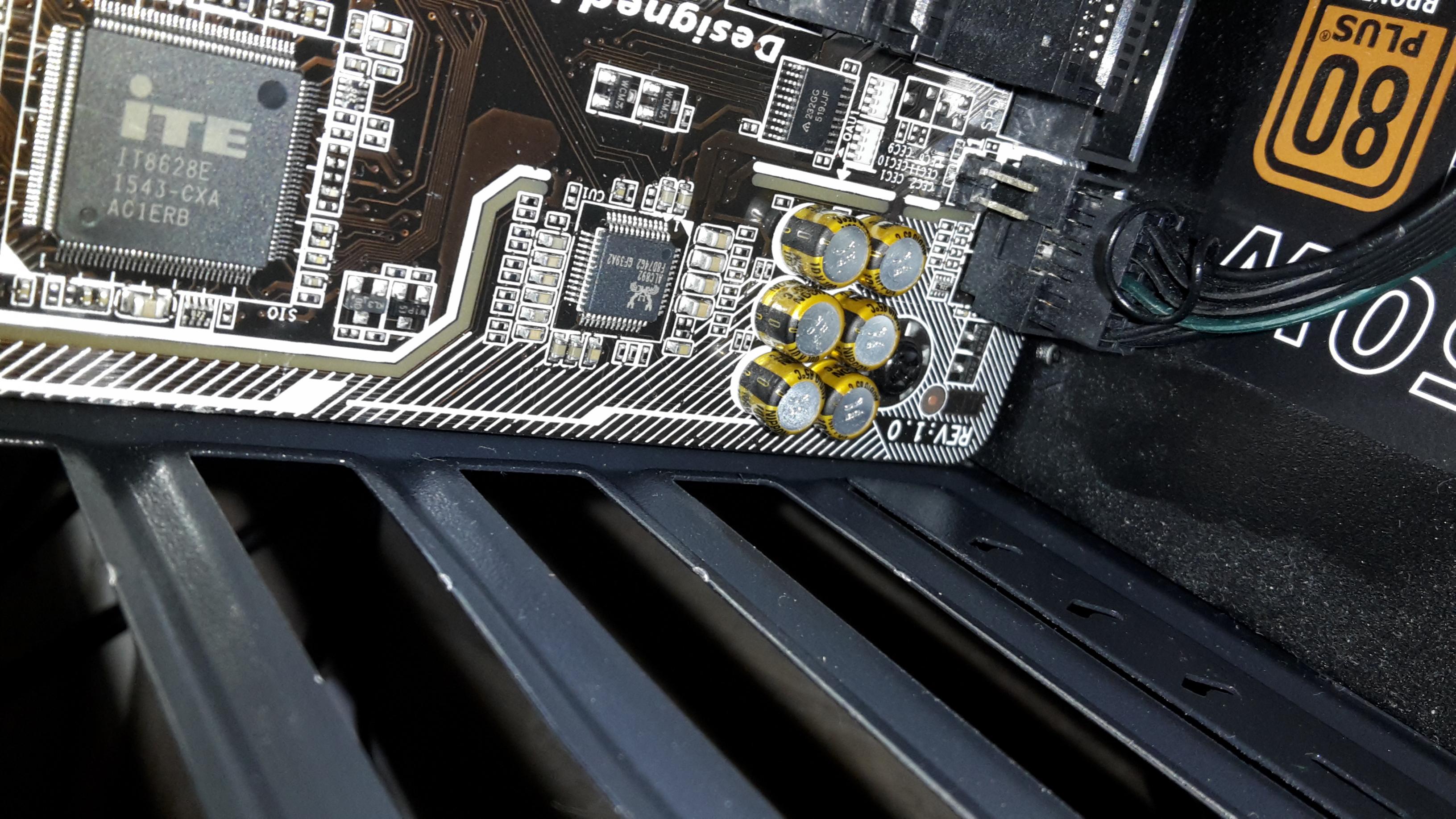 Dann habe ich es nochmal ohne graka versucht leider ging auch das nicht, obwohl ich den Rechner seit ca 2 Monaten ohne graka genutzt habe. Als ich dann genauer hingeguckt habe konnte ich Kratzer am Mainboard feststellen. Die sind wohl beim Einbau entstanden. Die Kratzer befinden sich auf am Rand der graka, ich habe dOrt weiße schräge streifen deshalb konnte ich diese (zwei) schnell erkennen. Außerdem ist ein Kratzer auf einem ''chip'' mit der Aufschrift ''ite''.