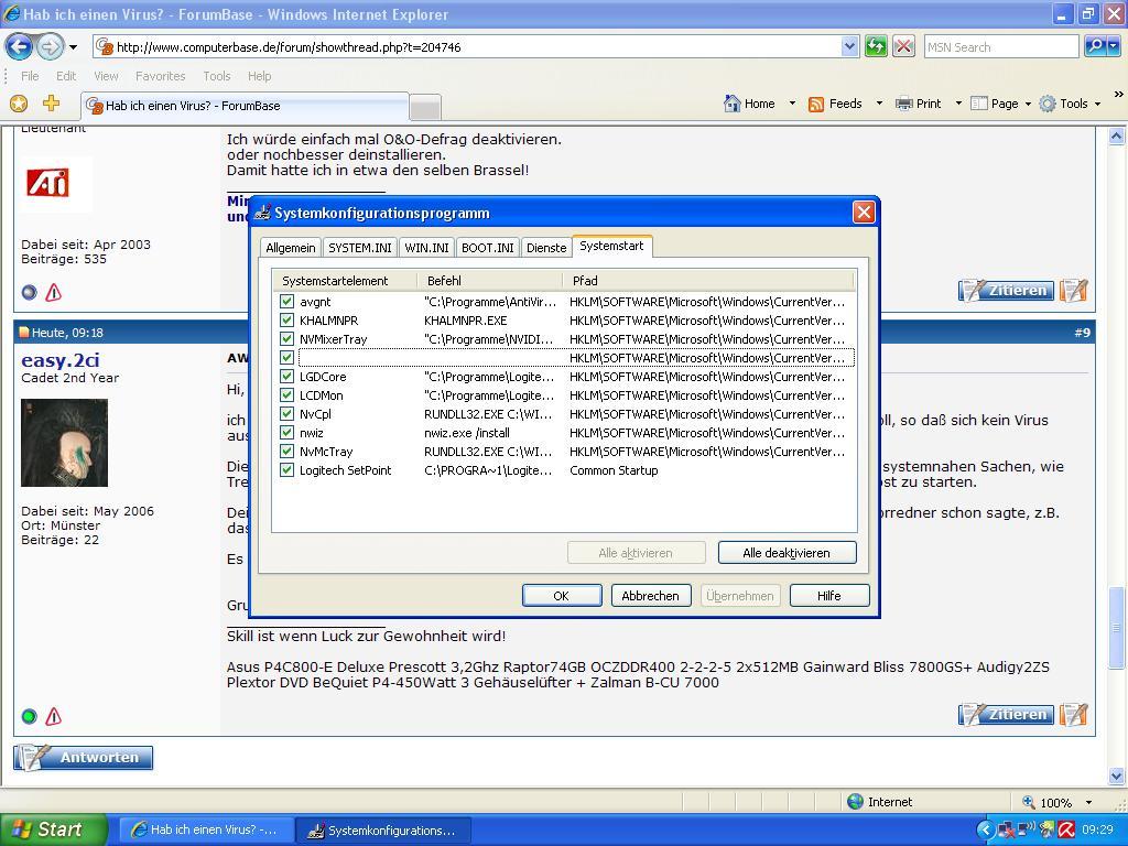 Hab ich schon mit Hijackthis und er hat nix gefunden. Nur eins aber das is von Logitech G15 und G5 ^^