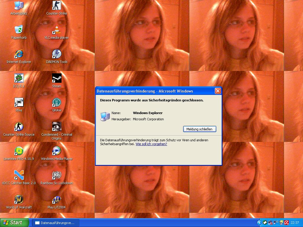 btw, ohne weitere Infos über das fesche mädchen auf dem Desktop wird das Problem schwer zu knacken sein :) mehr infos