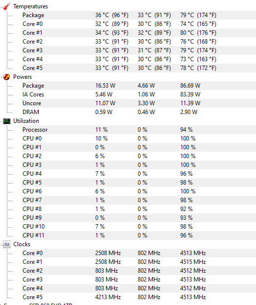 Dennoch habe ich das gefühl das jz irgendetwas schaden genommen hat. z.B sind die Mhz Zahlen der CPU laut HWMonitor sehr unterschiedlich und folgende werte habe ich für euch als Bilder hinterlegt. Könnt ihr mir helfen?