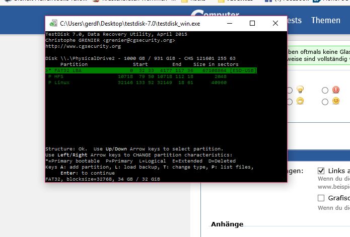 so nun wollt ich das mit testdisk versuchen,leider weiss ich nicht mehr weiter wie es weiter geht